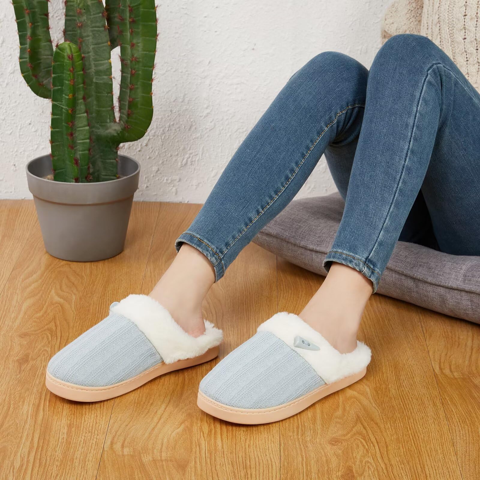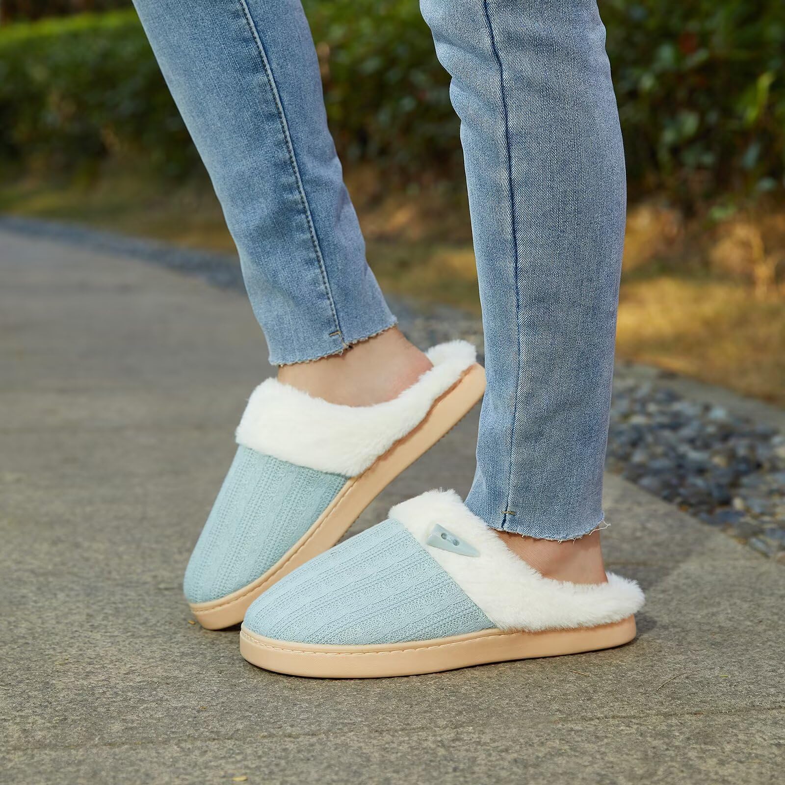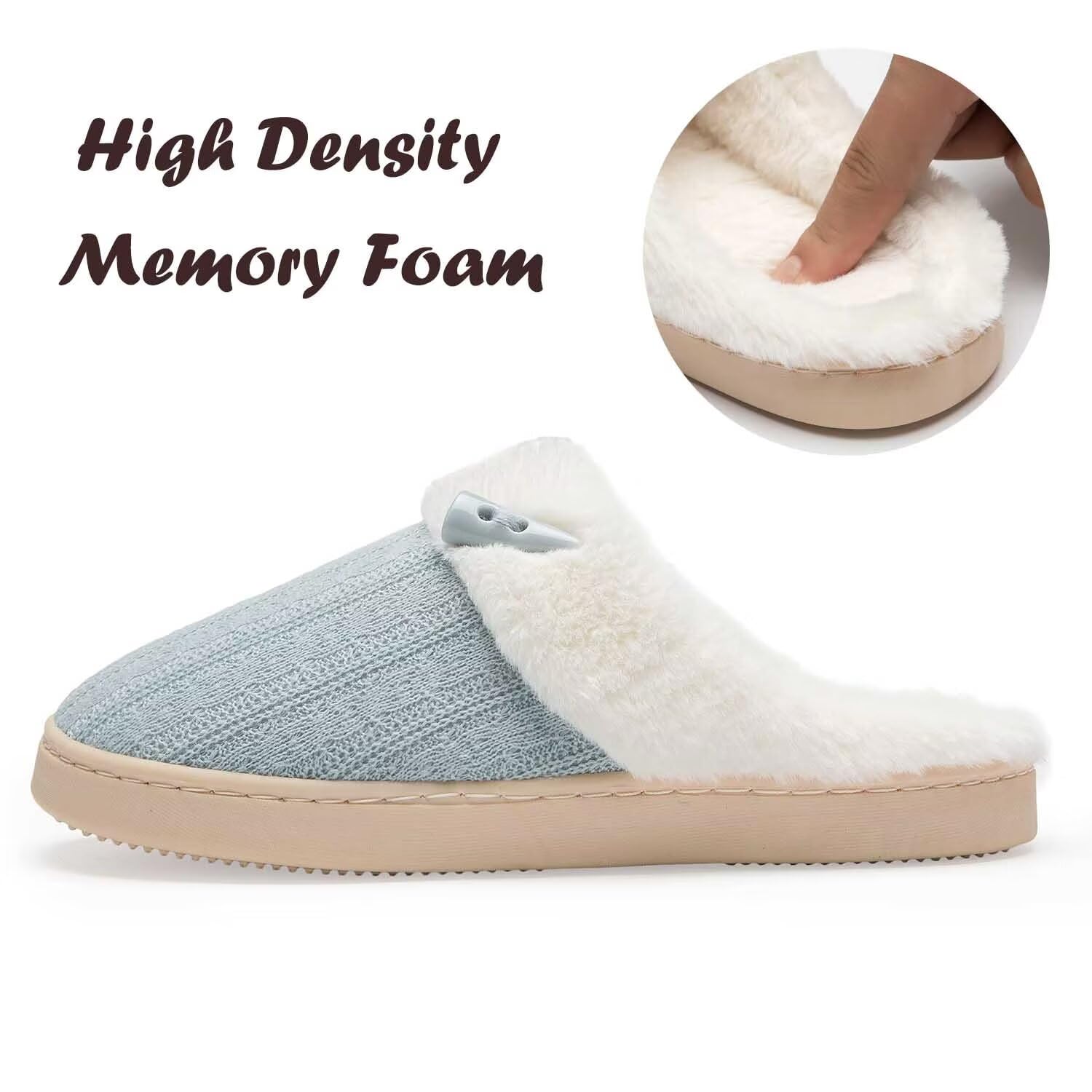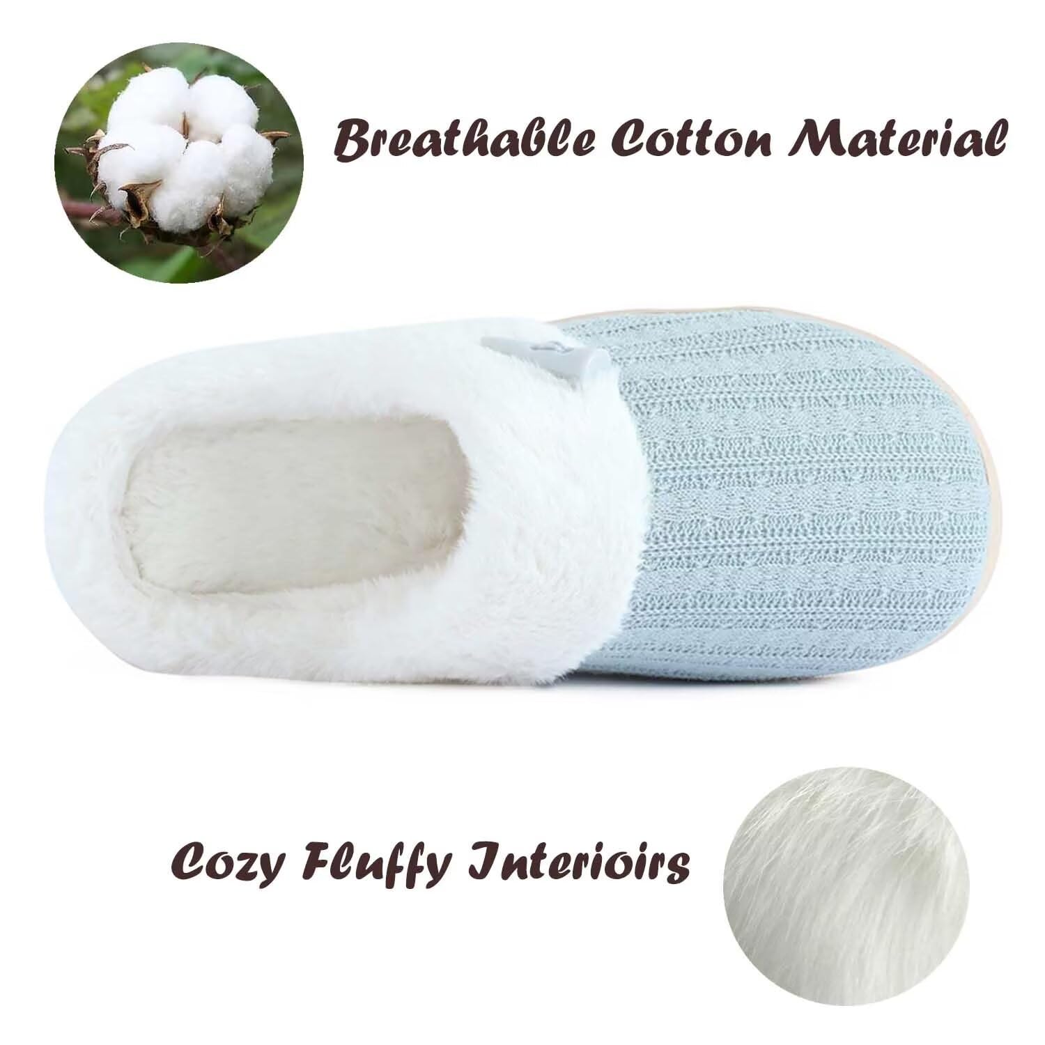 SOFT MEMORY FOAM FOOTBED:High-density memory foam cushion adds support and comfort for all day wear.Slip into these fuzzy bedroom slippers,relaxing at home or in the office.