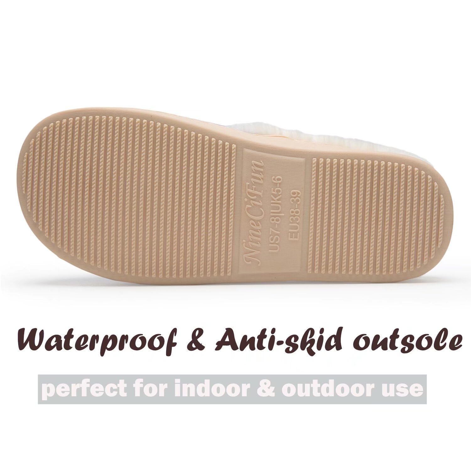 INDOOR & OUTDOOR USE:The textured bottom grips to the floor,making it perfect for indoor and outdoor family use.Rubber outsole mutes your stepping,makes these house slippers as a smart choice for bedroom use.