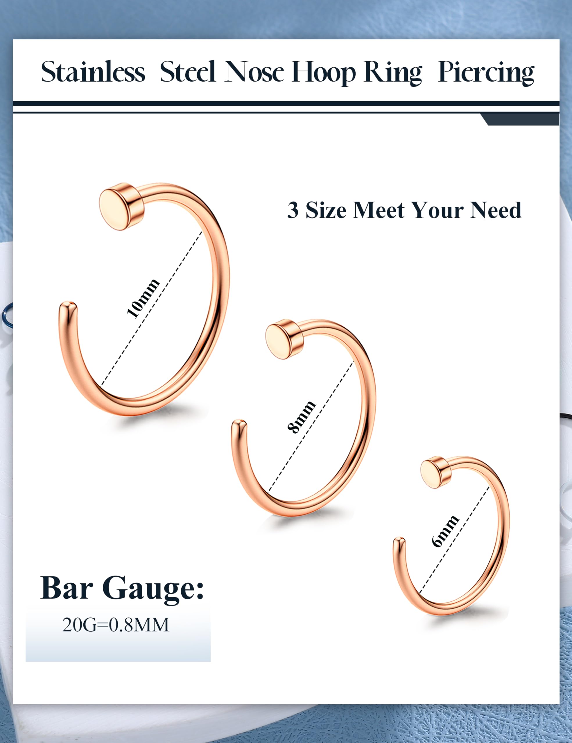 MATERIAL: Nose hoop earrings are made of 316L stainless steel, sturdy and durable, highly polished, smooth surface, long-lasting color, safe and comfortable for sensitive skin to wear