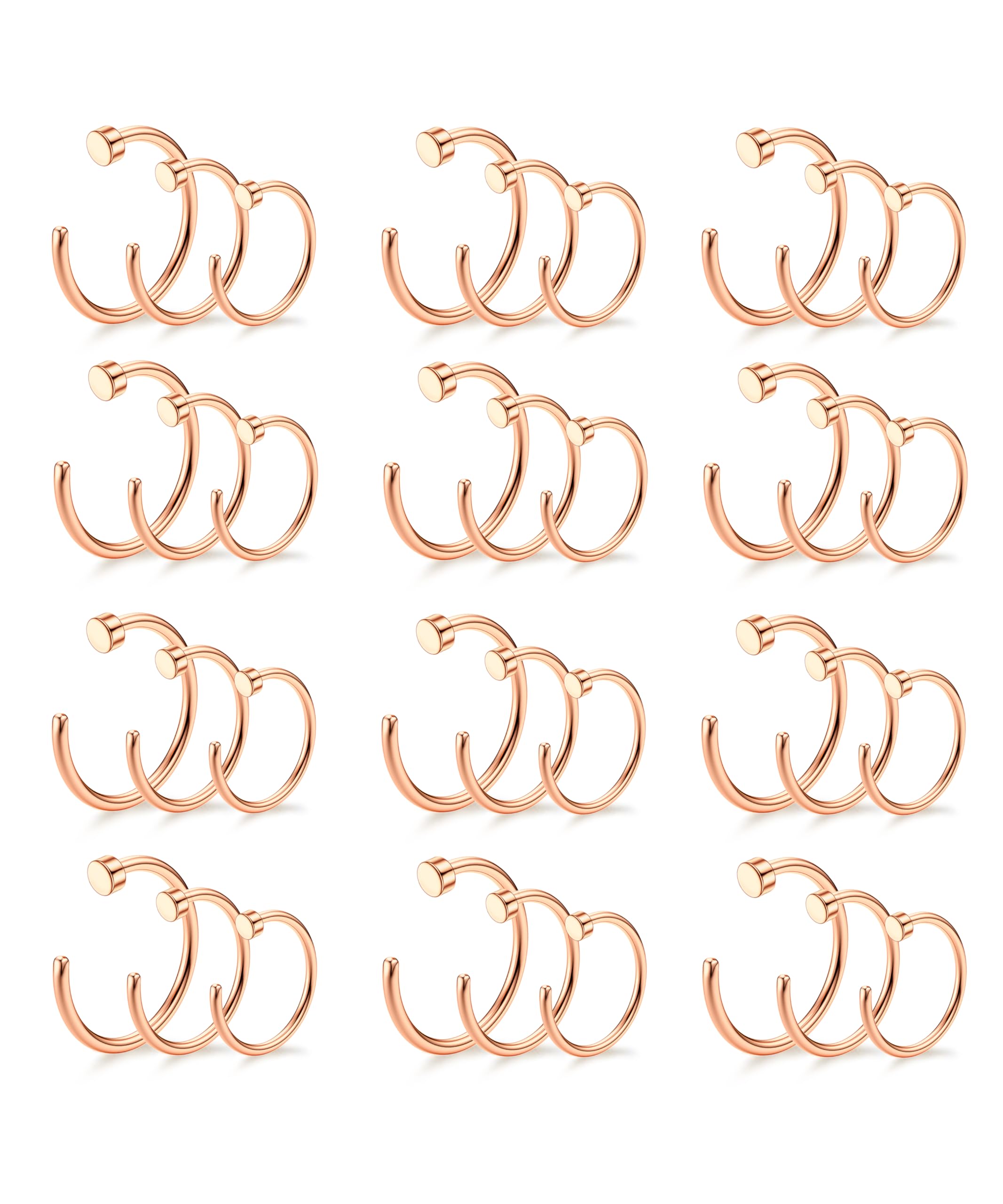 HOOP NOSE RINGS FOR WOMEN MEN: Hoop nose ring set comes with 36 pcs nose rings hoops in 12 different colors, affordable price, economical set. The most popular shape and style of hoop nose ring can match your dissimilar clothes and looks