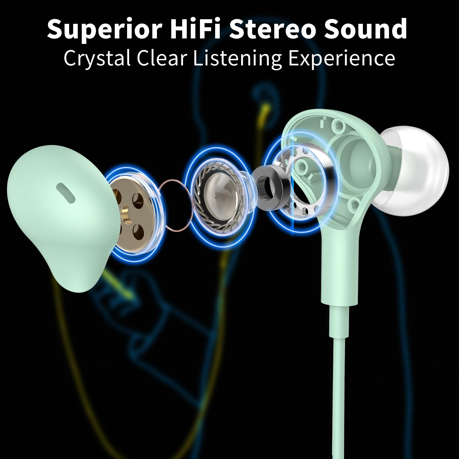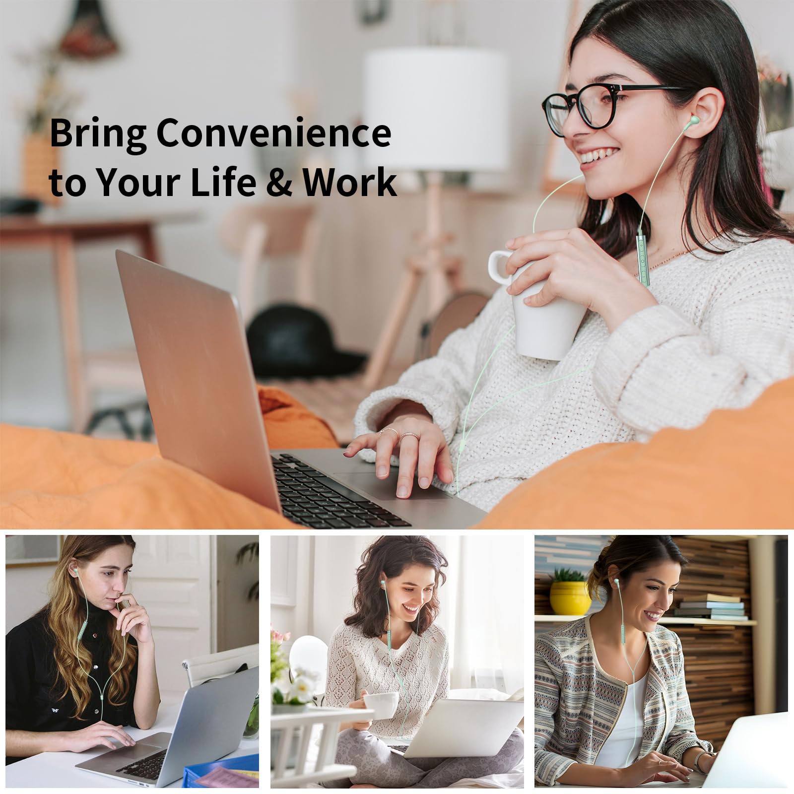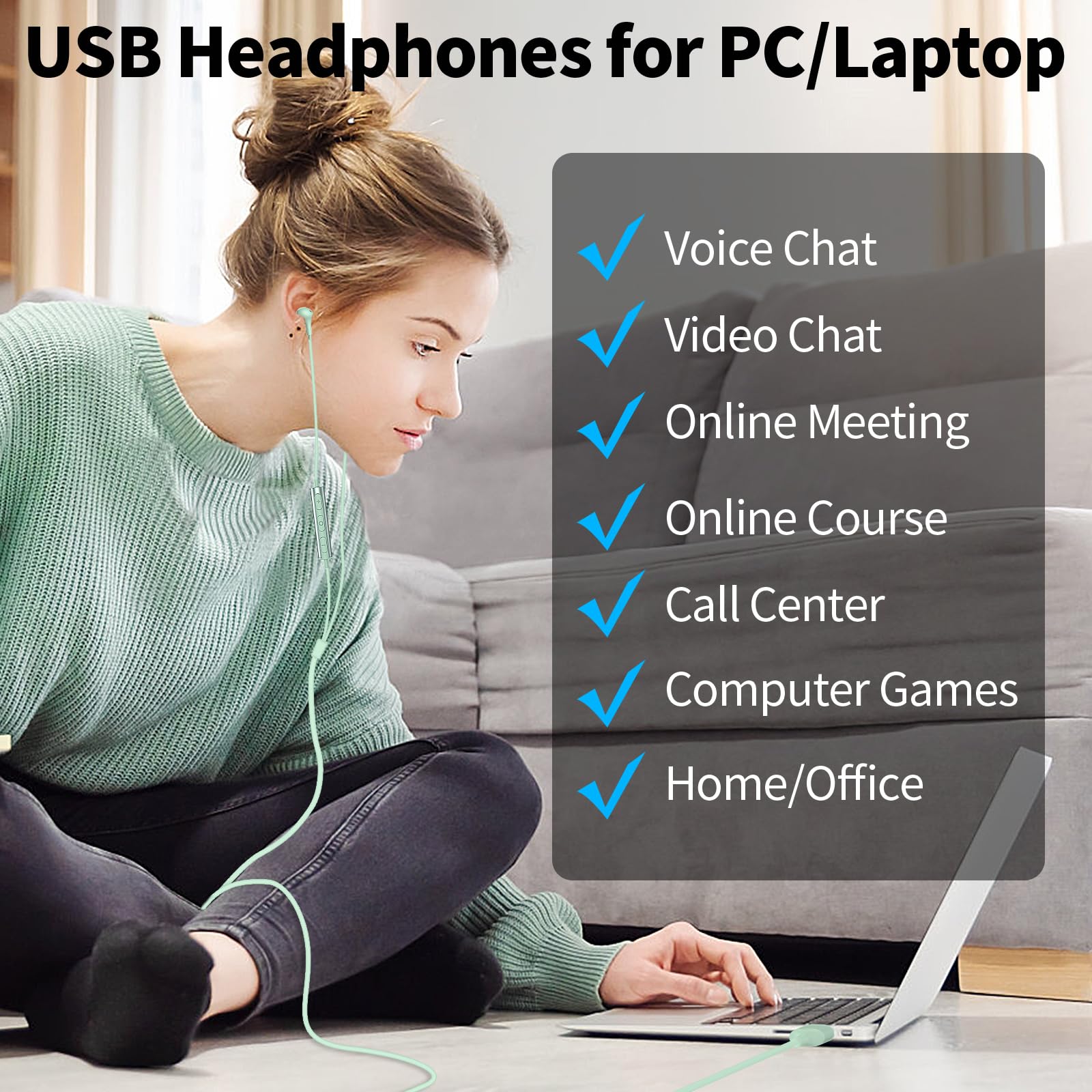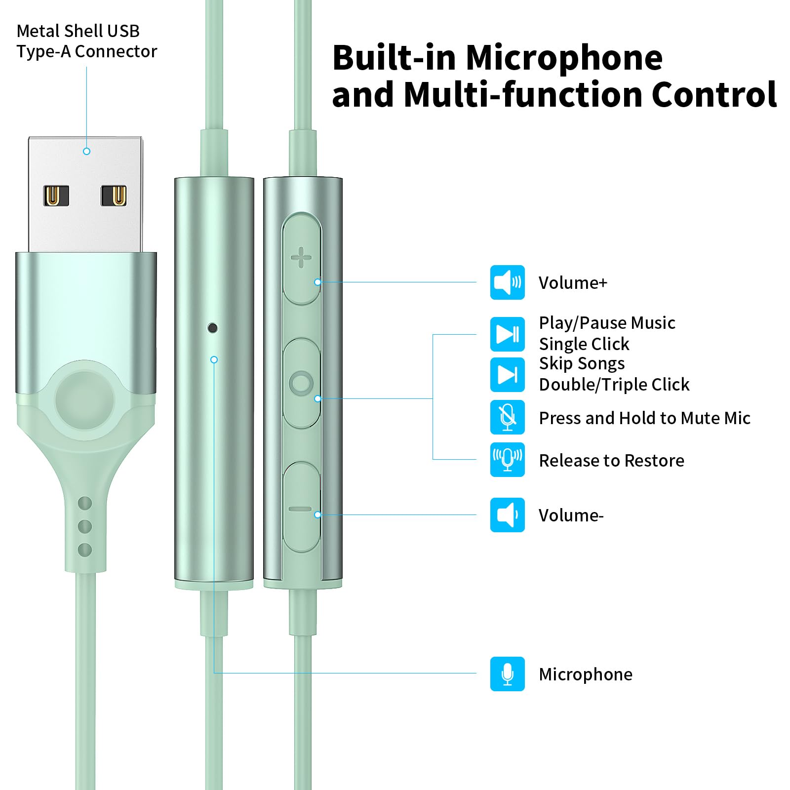 Lovely Look and Long Lasting: The USB earbuds for laptop designed as green color with alloy housing plug and button, which looks lovely and very suitable for your lovely girls, girl-friend or mother. The wire enhanced to thicker and made of robust TPE, the plug and button update to hard ally materail, allow to last for a long time.