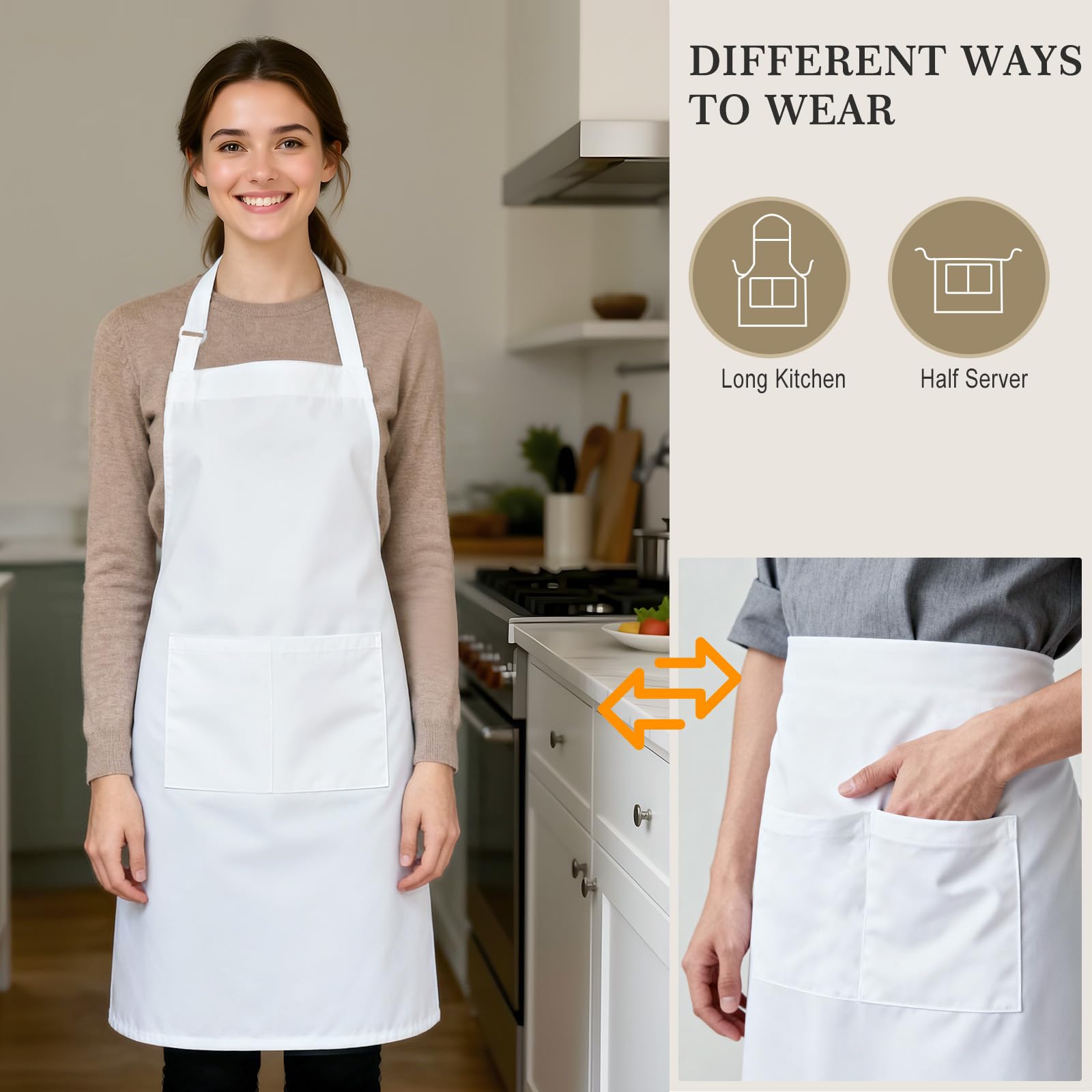 HANDY POCKETS: The white bbq apron features two deep front pockets (5.2"L x 7"W each) for easy access to your tools or cellphone while cooking