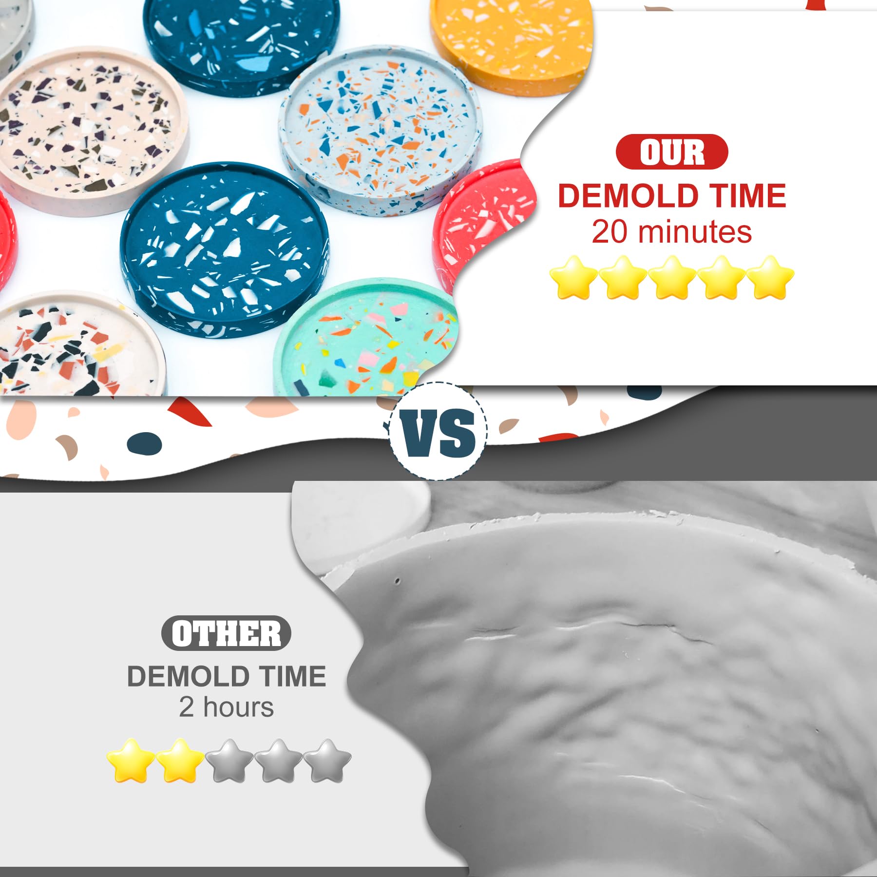 Quick-Set Formula: Experience the joy of faster crafting! Our advanced formula allows you to demold your creations in just 25-30 minutes, with full curing achieved in 2-6 hours. For even quicker results, place your finished piece in sunlight. This rapid process lets you complete multiple projects in one sitting, making it ideal for craft parties and DIY enthusiasts.