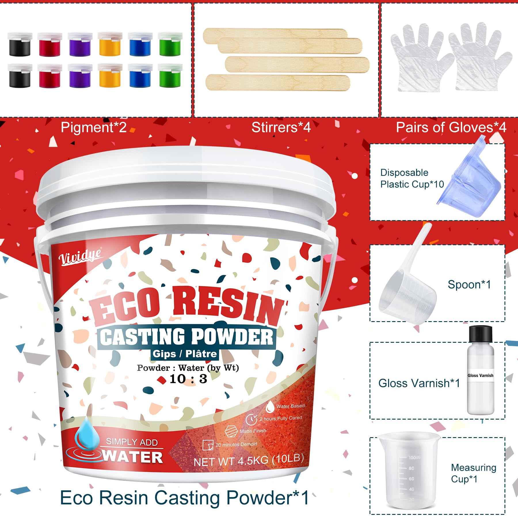 All-in-One Eco-Friendly Crafting Kit with Premium Tools: Our plaster powder kit includes eco resin casting powder, gloss varnish, stirrers, cups, measuring tools, gloves, and 6 water-based acrylic paints. It's non-toxic, odorless, and safe for beginners. Perfect for resin crafts, casting projects, and eco-friendly handmade art.