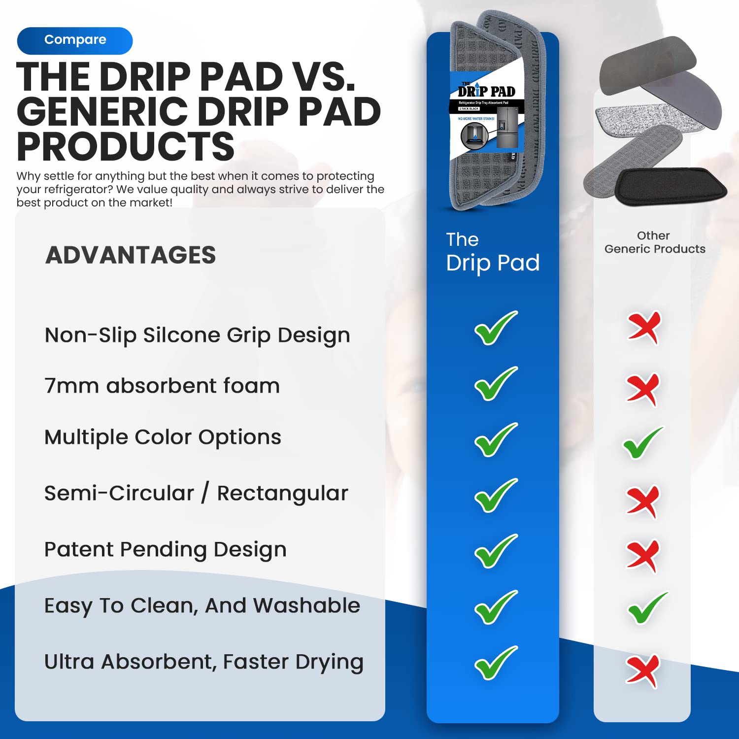 💧 Fits Most Fridge Drip Trays - Between the Semi-circular and Rectangular design, the Drip Pad is sized to fit a wide variety of drip trays