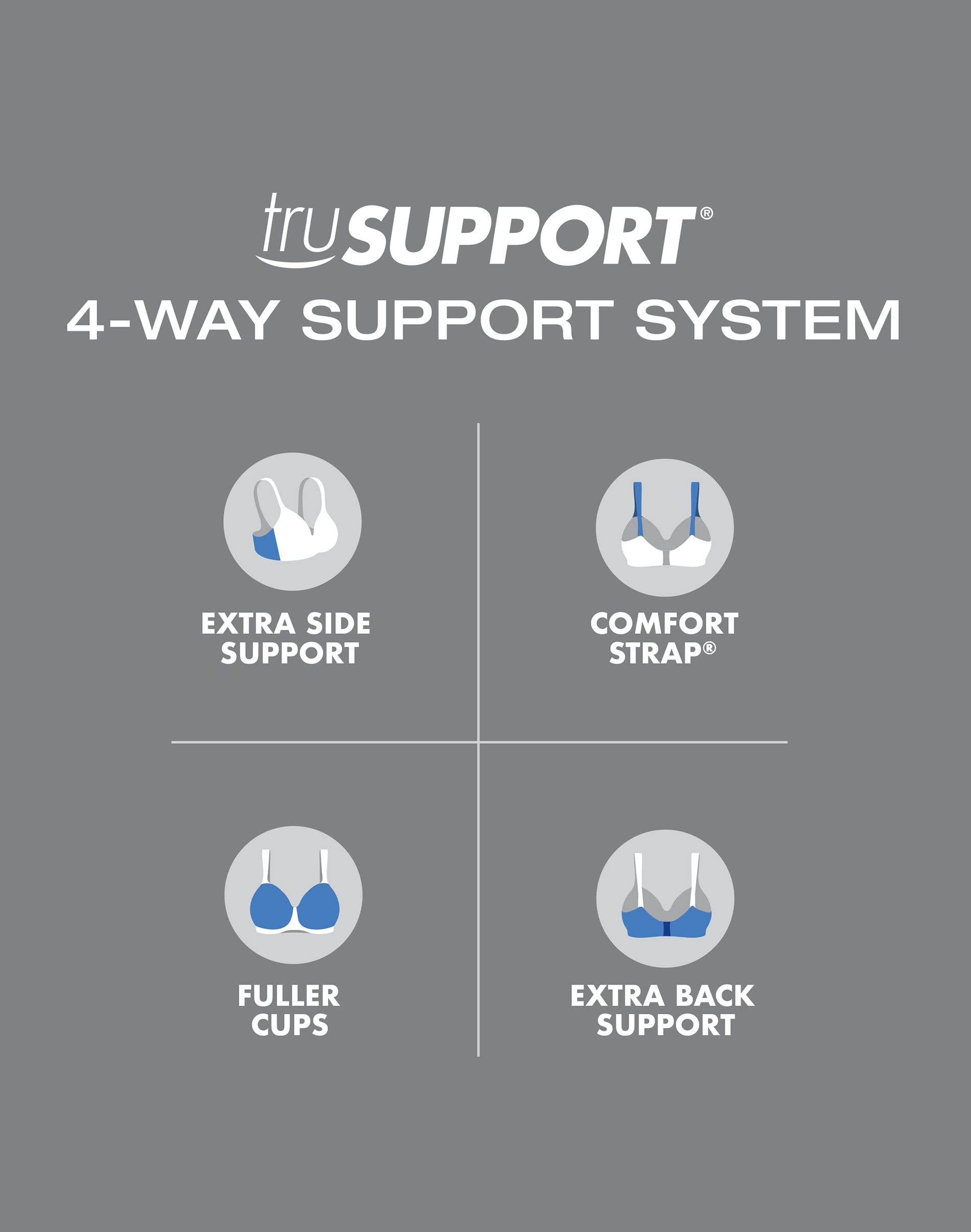 SUPERB WIRELESS SUPPORT - 4-way TruSUPPORT system provides higher sides for bulge control, fuller seamed cups for natural shaping, wider, cushioned straps for all-day ease, and a smoother back for enhanced stability.