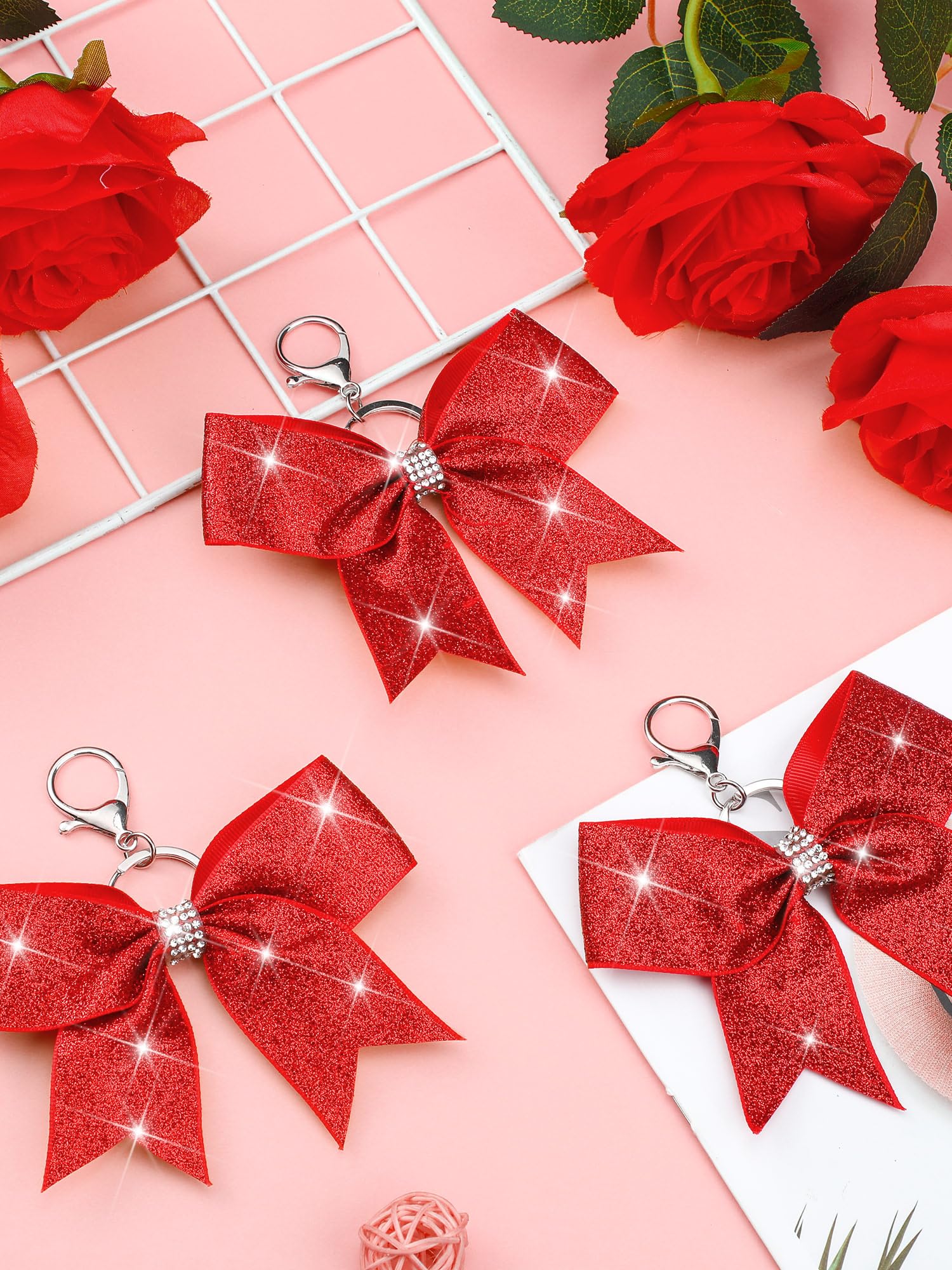 Ideal for Various Occasions: whether you want to add some point to a daily item or need party favors for an event, our rhinestone cheer bow keychains are a nice solution; They're not only beautiful, but also practical and multi functional, nice for cheer camp, team, practice, performance, or daily use