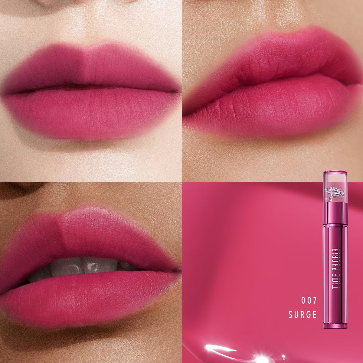 Vibrant Fuschia Pink with Soft Blurring Finish: Delivers rich fuschia pink lip color designed to enhance natural lip tone while transforming from glossy shine into a soft matte, diffused lip finish for a smooth, modern lip look.