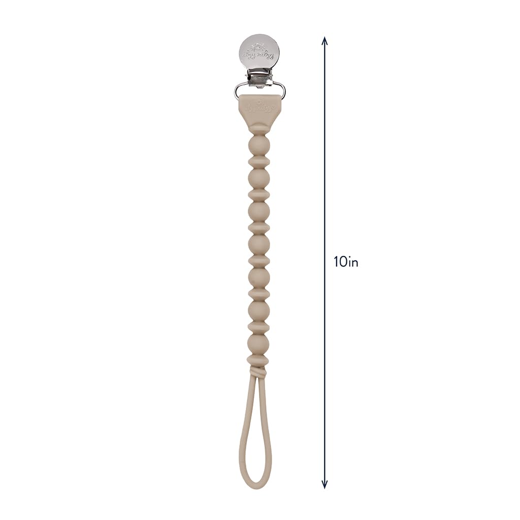Meet the stylish yet practical silicone pacifier holder from Itzy Ritzy. Crafted from 100% food-grade silicone, this durable accessory ensures pacifiers stay securely in place, offering peace of mind for parents on the go. The sleek one-piece design boasts trendy beaded detailing available in adorable hues to suit every style, adding a touch of flair to your little one's ensemble. With a gentle clasp that won't snag on clothes and an adjustable silicone cord compatible with various pacifiers, teethers, or toys, convenience meets safety in one adorable package. Designed for infants from birth onwards and meeting ASTM safety standards, this BPA and PVC-free accessory measures 9.5 inches in length, providing both fashion and function for your precious bundle of joy.