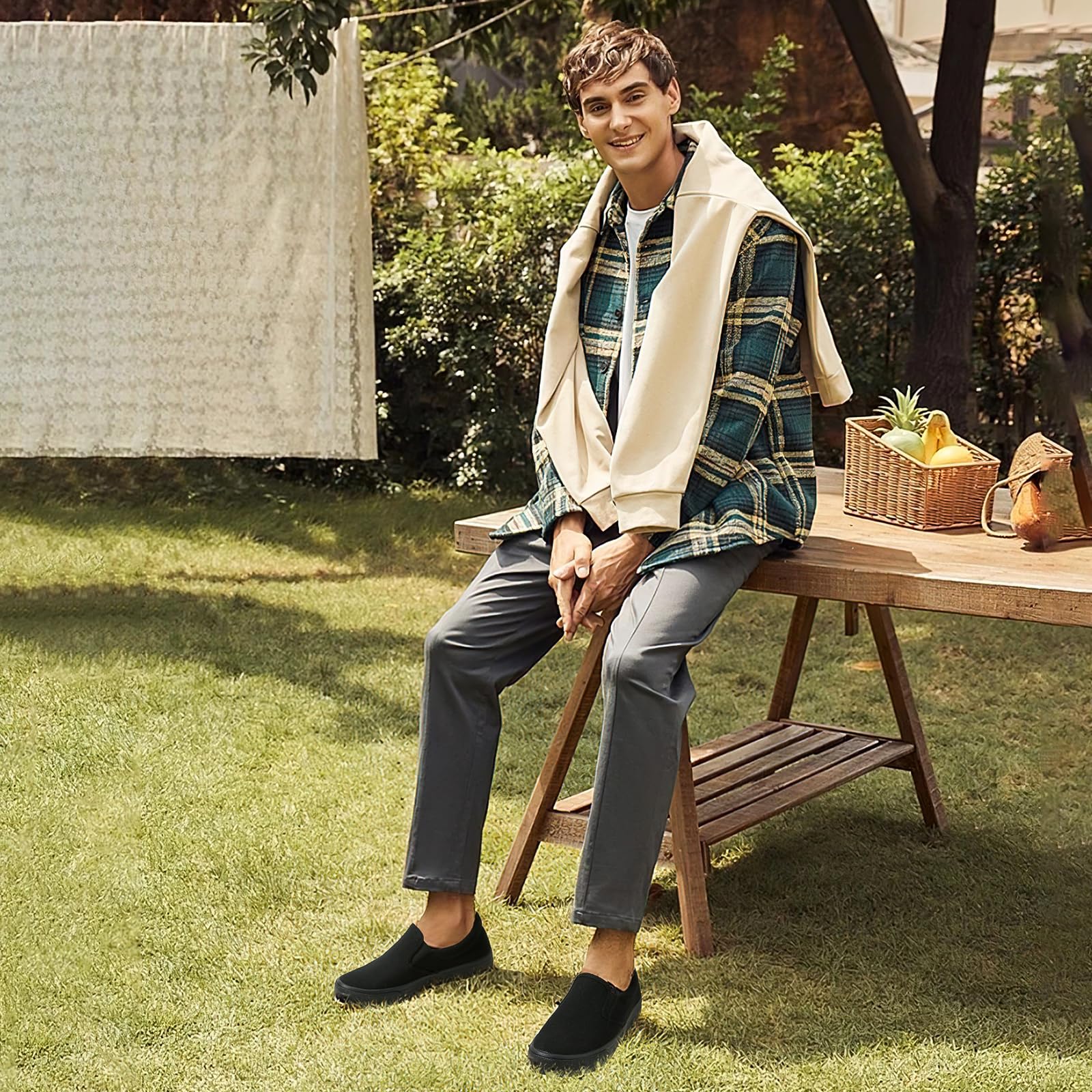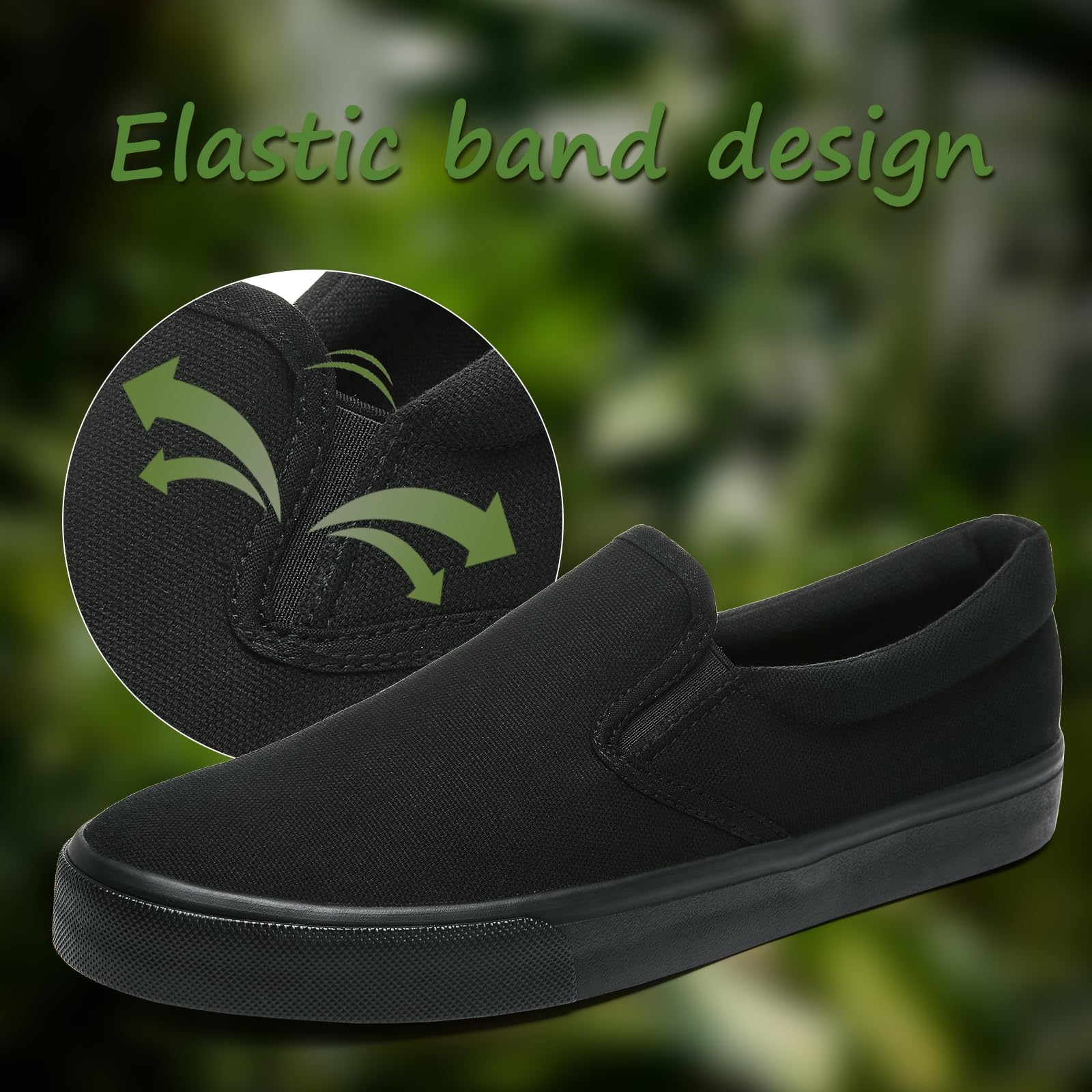 Easy Slip On Wear:Men's slip on shoes are designed with an elastic band that can be easily put on and taken off without the need for LACES,but is tight enough that it feels secure on your foot.