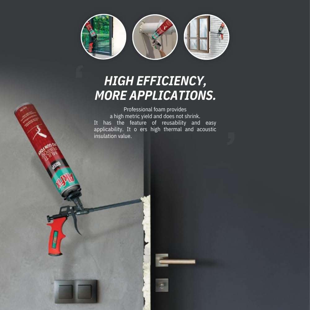 Multi Purpose Foam: Polyurethane gun foam with a single component that is ready to use in a variety of building materials. It is excellent for fixing and insulating door and window frames, walls, gaps, joints and cavities.