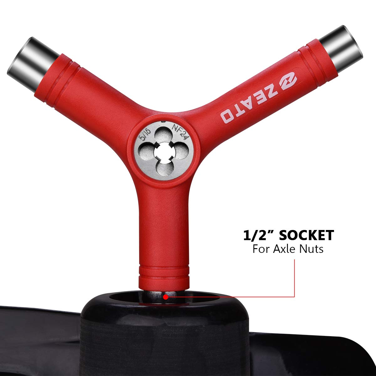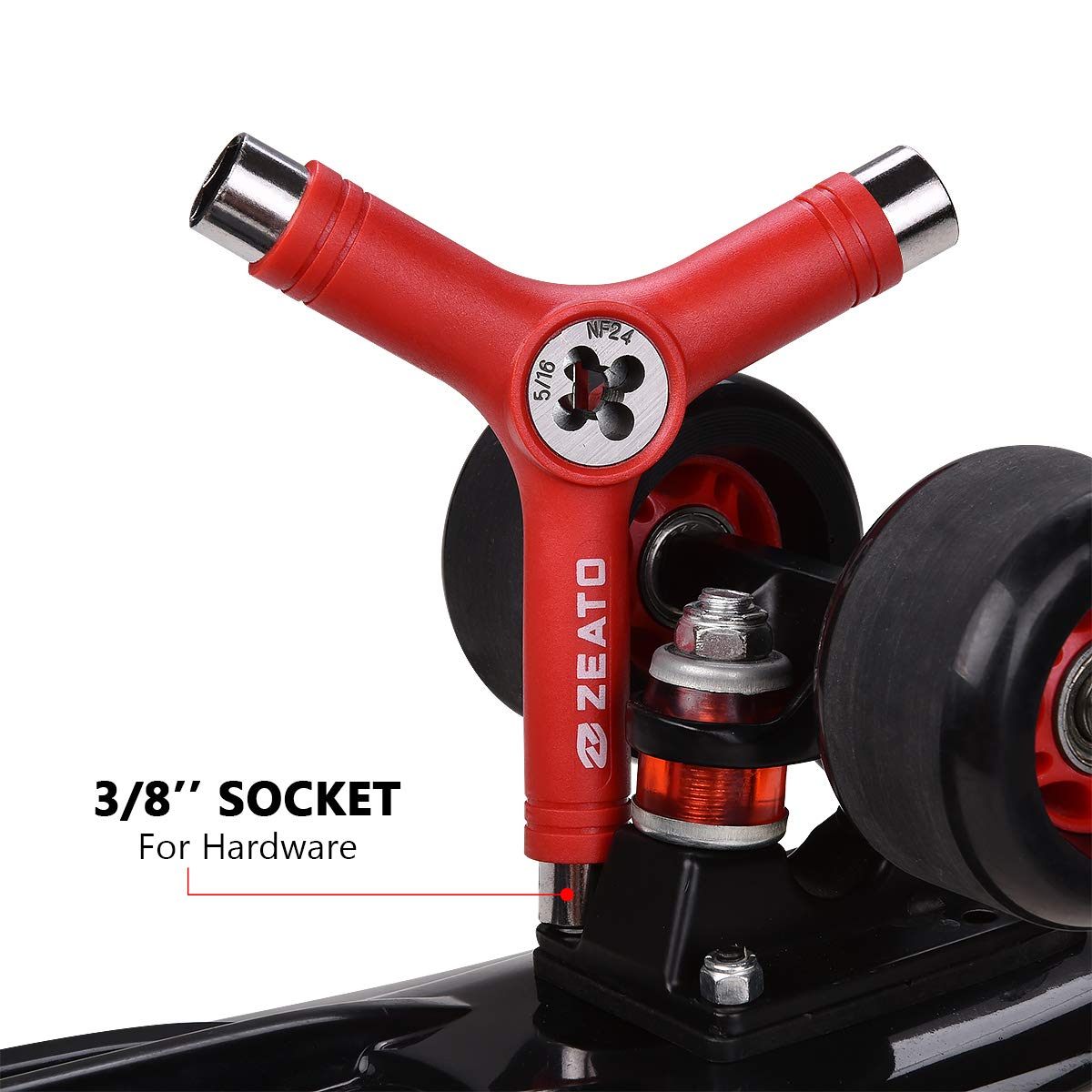 [Multi-functional Tool]: A multi functional skateboard Y tool that allows you to adjust axle nuts, mounting hardware, and the kingpin nut on the top of the truck; which is perfect for completing skateboard assembly
