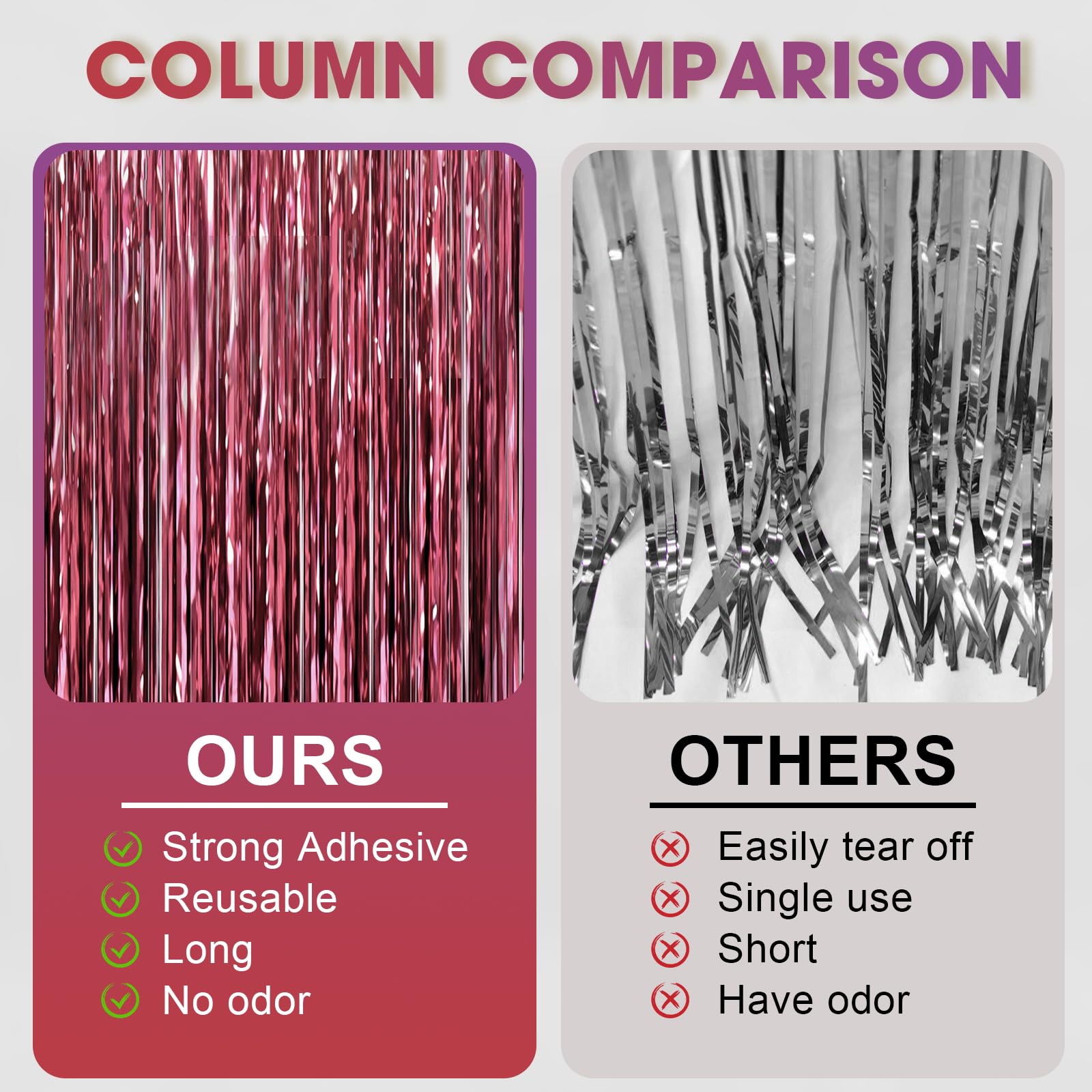 Eye-Catching Design: These champagne foil fringe tinsel backdrops boast vibrant colors and a shimmering effect that reflects light beautifully. Your friends will be mesmerized by the captivating atmosphere these curtains create