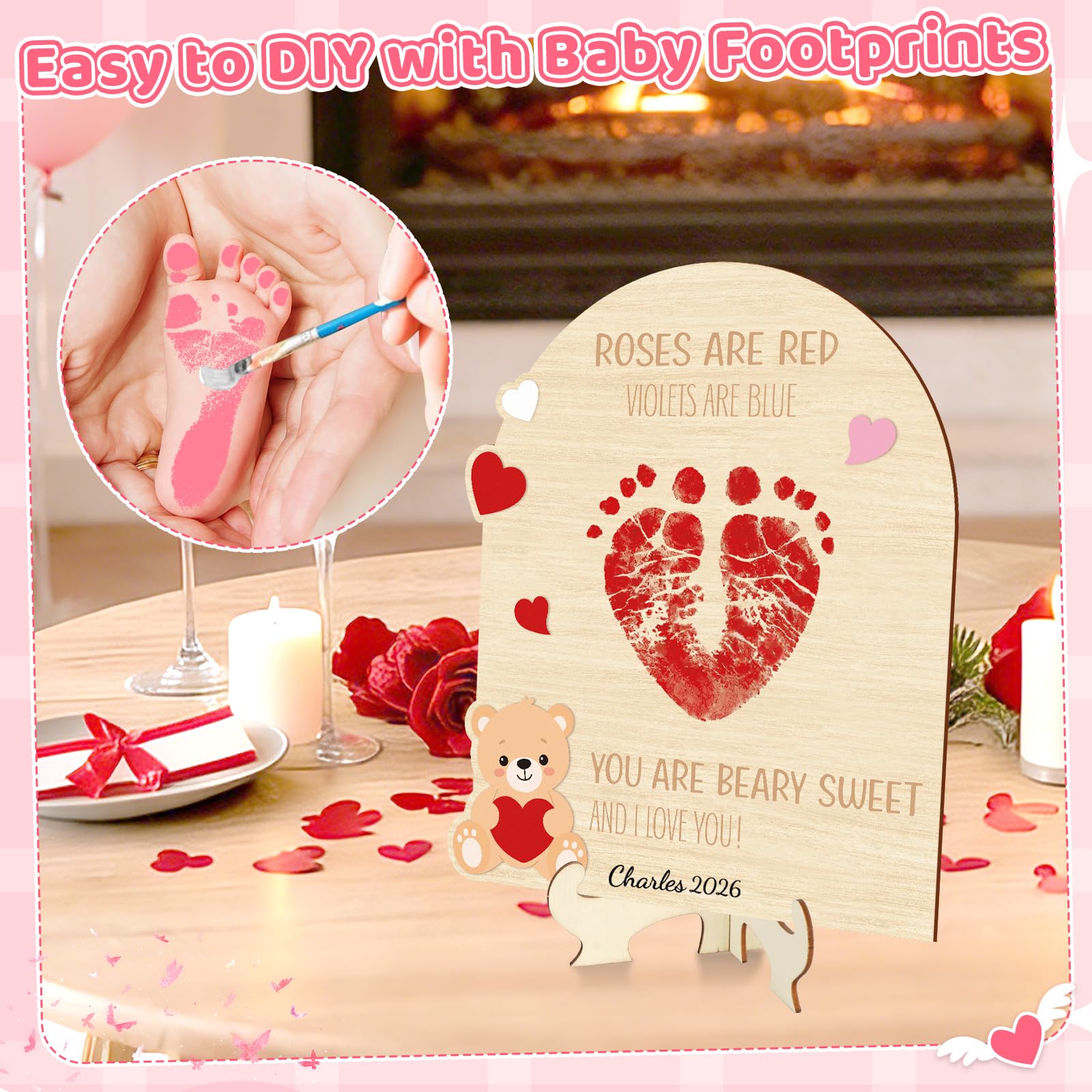 Exquisite Valentine's Day Gifts: Our Valentine's Day DIY footprint sign is very suitable for expectant mothers, or as holiday gifts for grandparents, etc.