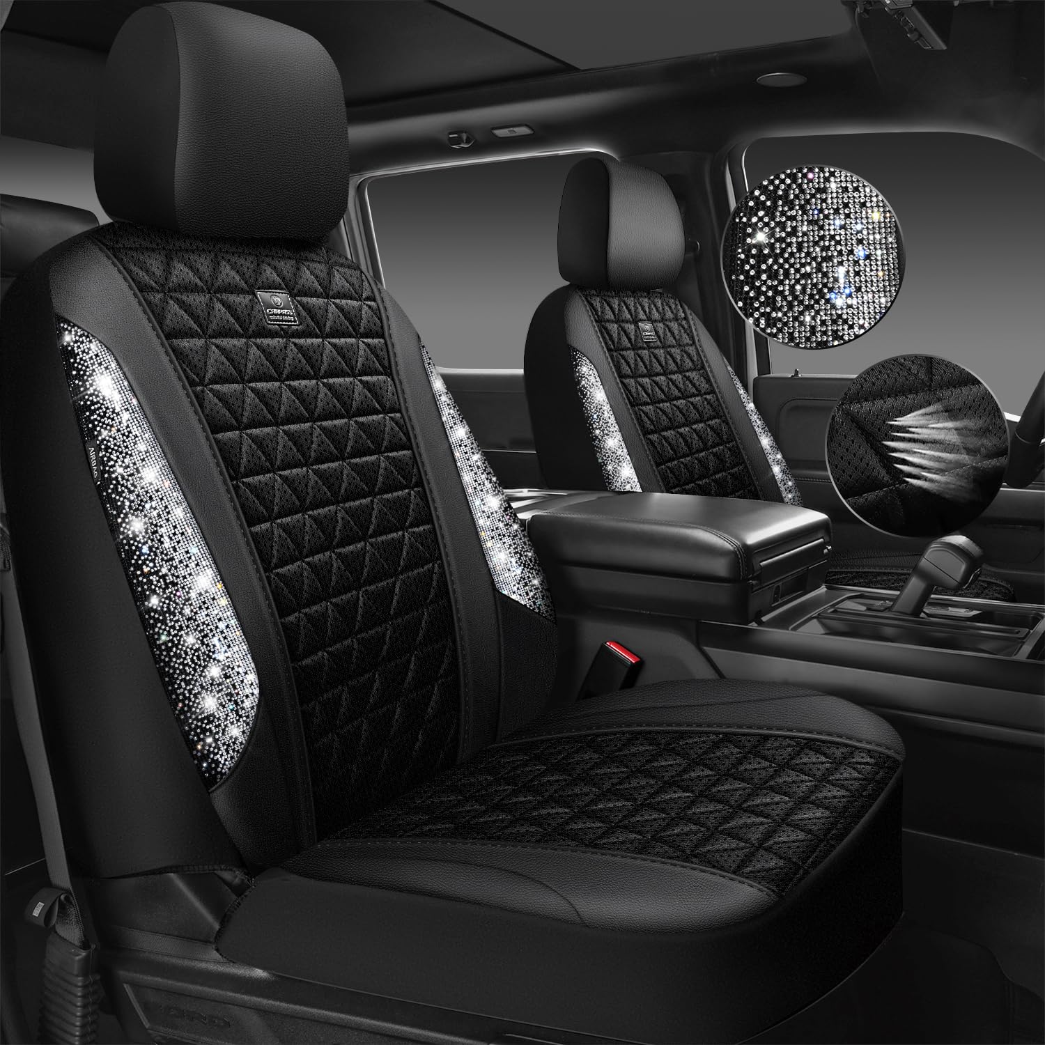 UNIVERSAL SPARKLY DIAMOND: Refresh your car if you install the bing bling crystal diamond mesh car seat covers, Breathable soft mesh lined sponge material. Surface rhombic texture design, lining sponge soft and comfortable. Fit for most SUV Sedan Pickup coupe automobile vehicle seats with adjustable headrests. Can be installed with the detachable headrests