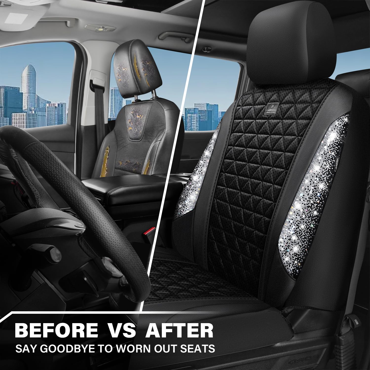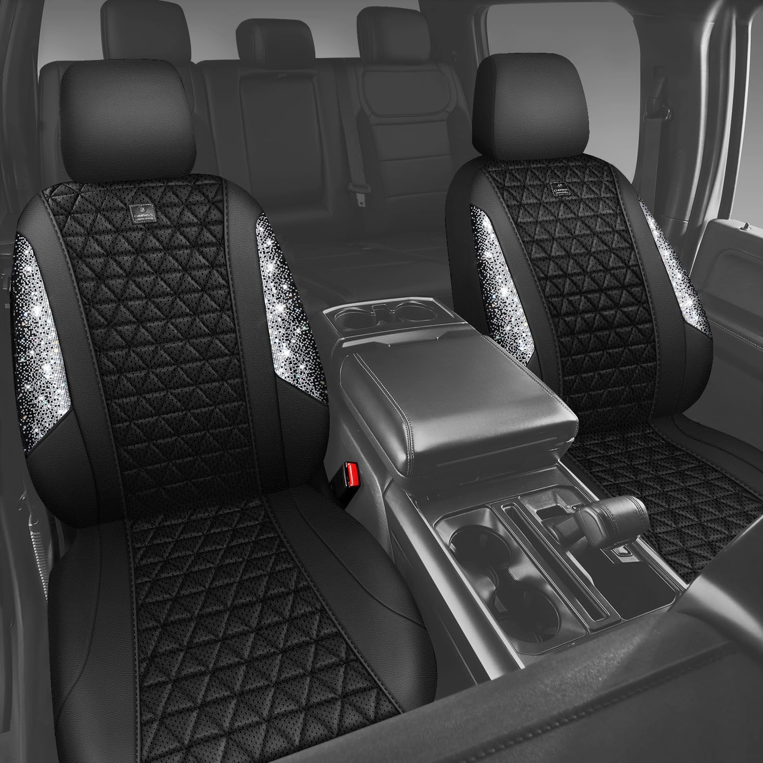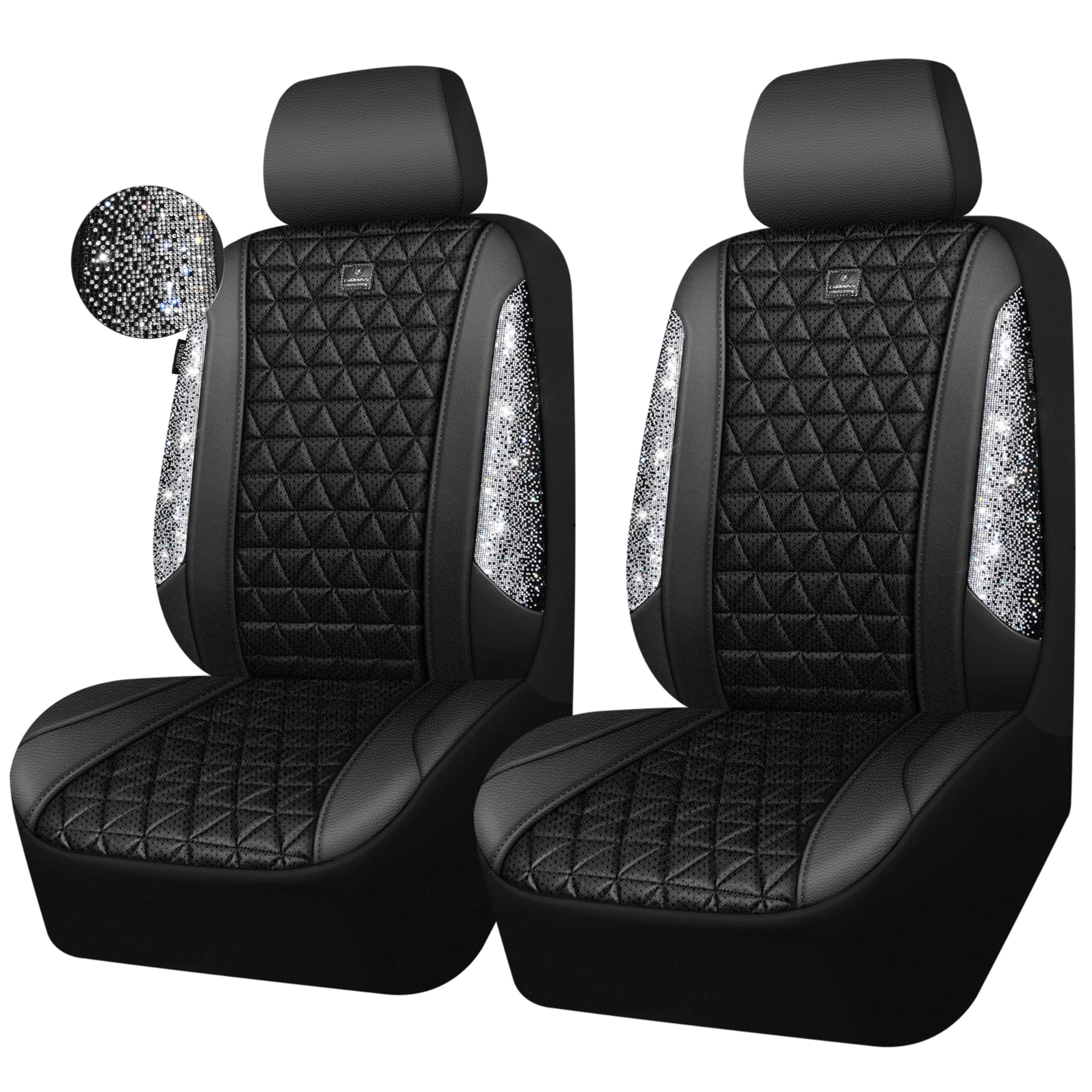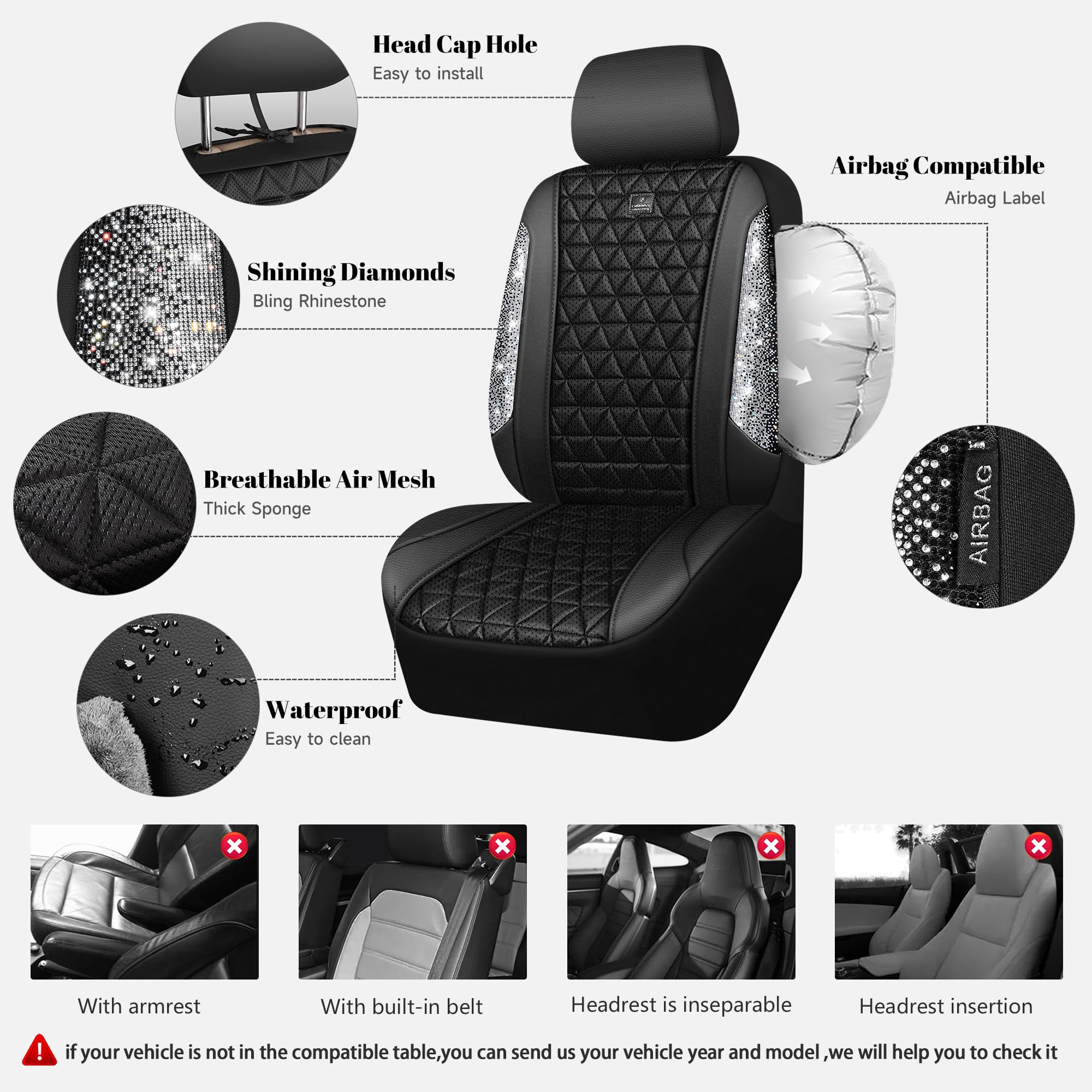 BLING LEATHER SEAT COVER - Premium rhombus leather design lined sponge with pretty rhinestones. Luxury black pu leather with shiny rhinestones perfect for women, girls. Perfectly match your car's interior look. Ensure your seats of your vehicle will last for many years to come. Refresh your interior look. Beautiful design with good quality. Top grade diamond craftsmanship, firm and not falling off