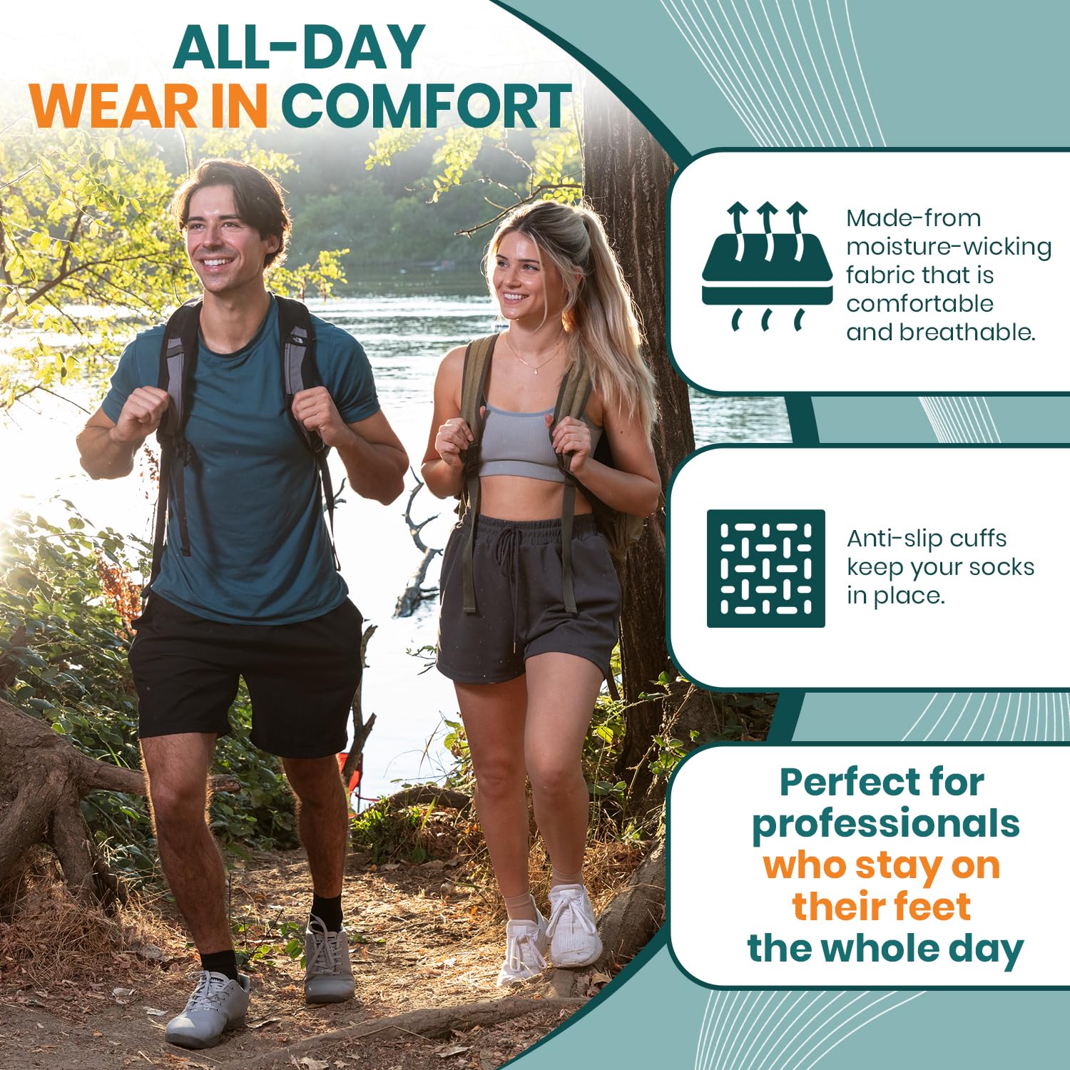 Wear It All Day Long - Made from fabric that's comfy, breathable, and moisture-wicking. Anti-slip cuffs keep the socks in place–perfect for professionals who stay on their feet the whole day.