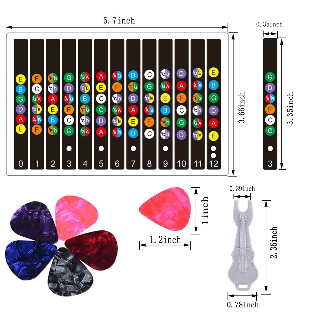 🎸【EASY TO USE FOR BEGINNERS】The colorful fretboard note decal great for the classroom teacher or private studio teacher teaching, guitar fingerboard frets map sticker absolutely a big help for the beginner who wants to learn guitar. It makes your learning easy and speeds up your memory, you can enjoy yourself while playing guitar completely.