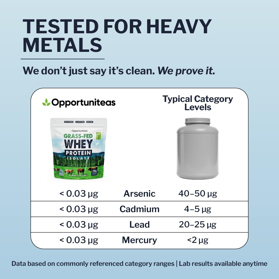TESTED FOR HEAVY METALS AND QUALITY ASSURANCE - Every batch is lab-tested for heavy metals such as lead, arsenic, cadmium, and mercury. Verified for purity, potency, and protein content so you can trust whatâ€s in every scoop.