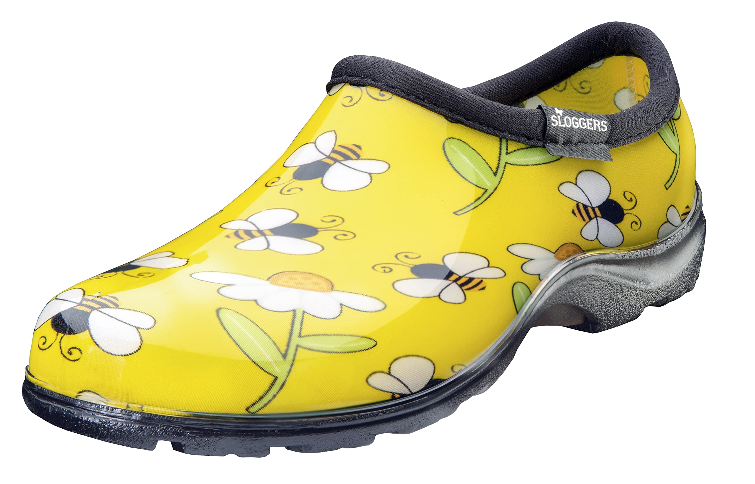 Description Product Description Designed with a honeycomb heel section that not only reduces weight, but also adds a spring to your step. Sloggers clogs, shoes, ankle boots and rain boots come with “All-Day Comfort” premium insoles to keep your feet supported all day. Sloggers signature deep lug tread provides the same stability and support as a real work boot. Made with 90% recycled material. Sloggers are easy to care for and clean. Hose them off or wash off in the sink. Remove insole to airdry. Amazon.com Cultivate all the enjoyment you can from your garden in the Midsummer garden shoe from Sloggers. Brilliant floral design meets mud- and puddle-proof construction so you can get out there after a refreshing spring shower and stay decidedly un-soggy. A low-cut ankle offers range of motion for easier kneeling and squatting as you work the soil. From the Manufacturer Women's Garden Shoe Midsummer, 6, (Black), Ea.