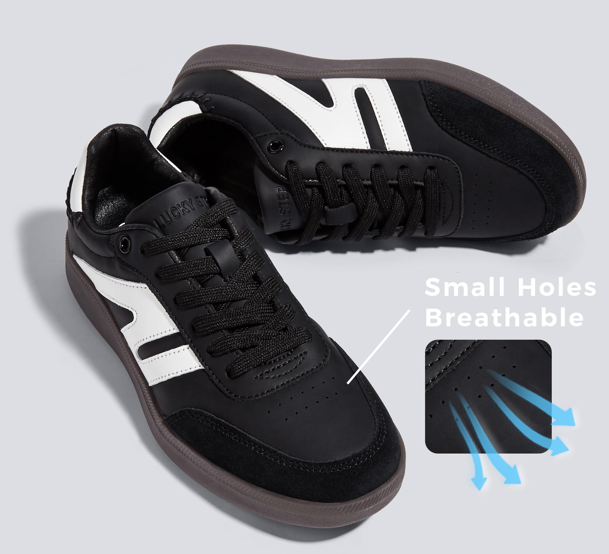 【BREATHABLE】: The casual skate shoe is designed with strategically placed perforations that not only add a stylish touch but also enhance breathability.