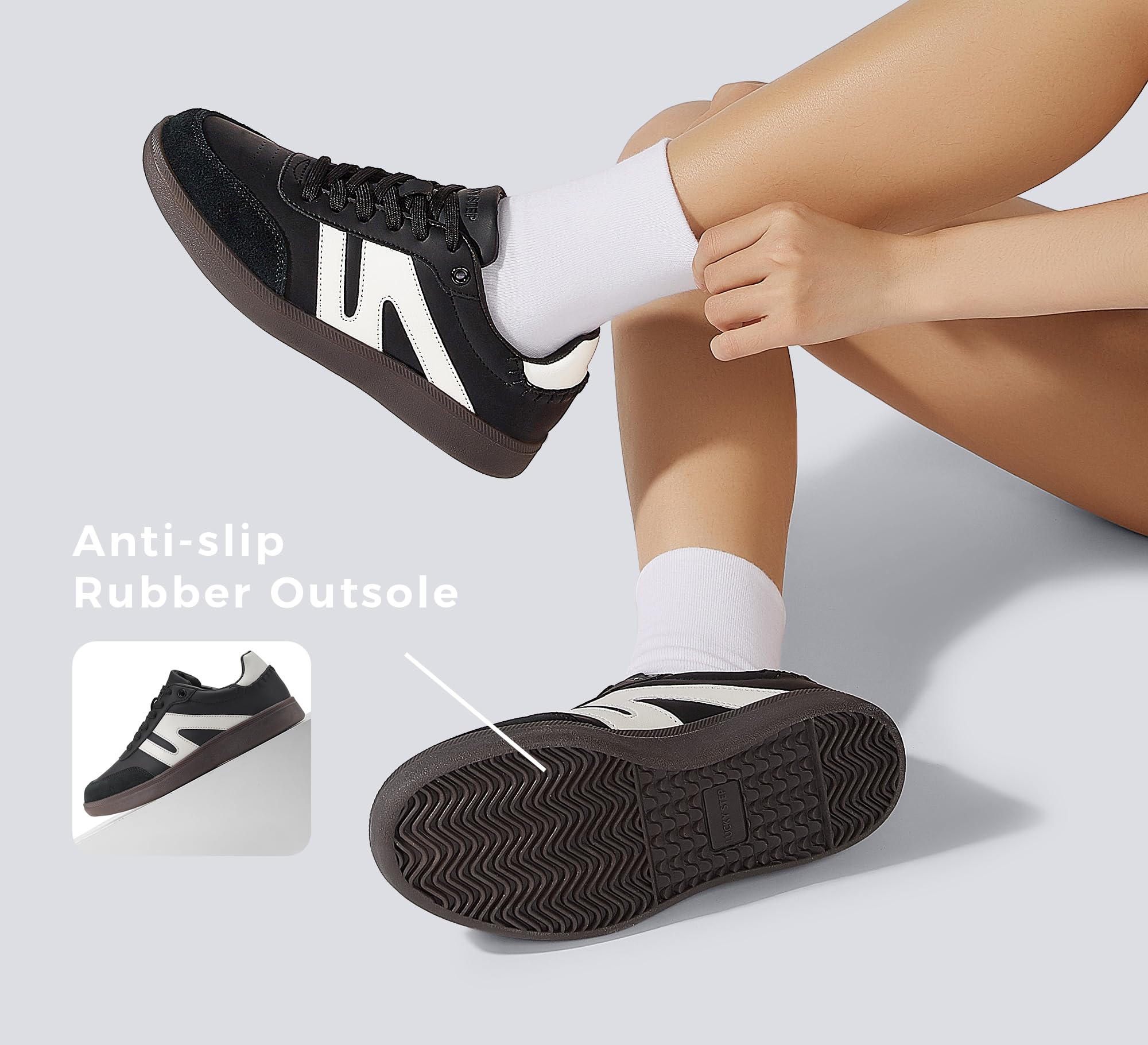 【ANTI-SLIP】: The gum sole feature provides excellent traction and stability, ensuring a solid grip on diverse surfaces and minimizing slip risks.