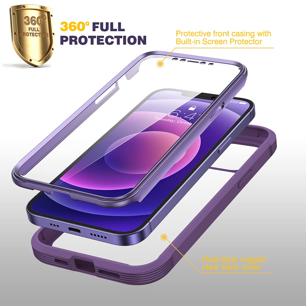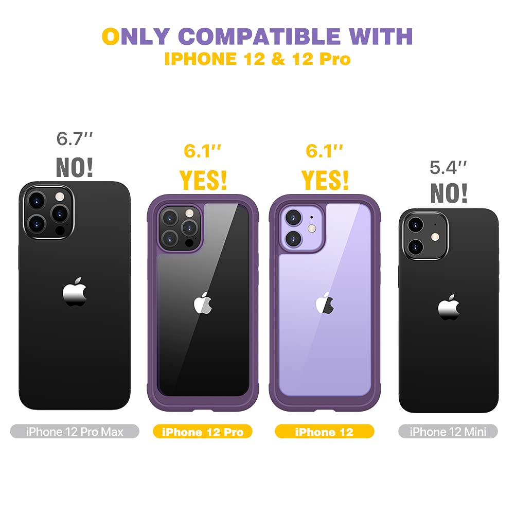 【360 Degree Full Body Rugged Protection】 Dual layer provides 360 degree full body rugged protection.Soft TPU shock absorption and raised 4 corners surround your iPhone 12 / 12 Pro and protect it from accidental drops and falls.