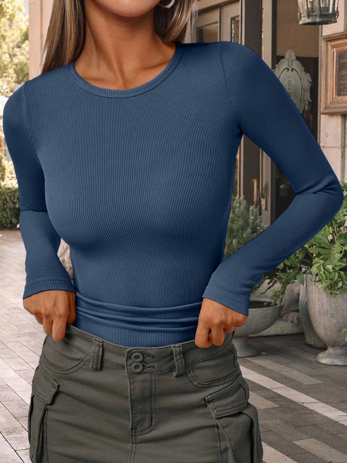 Long sleeve ribbed crewneck shirts for women, business casual dressy tops in fall & winter, suit for office,outdoor,home