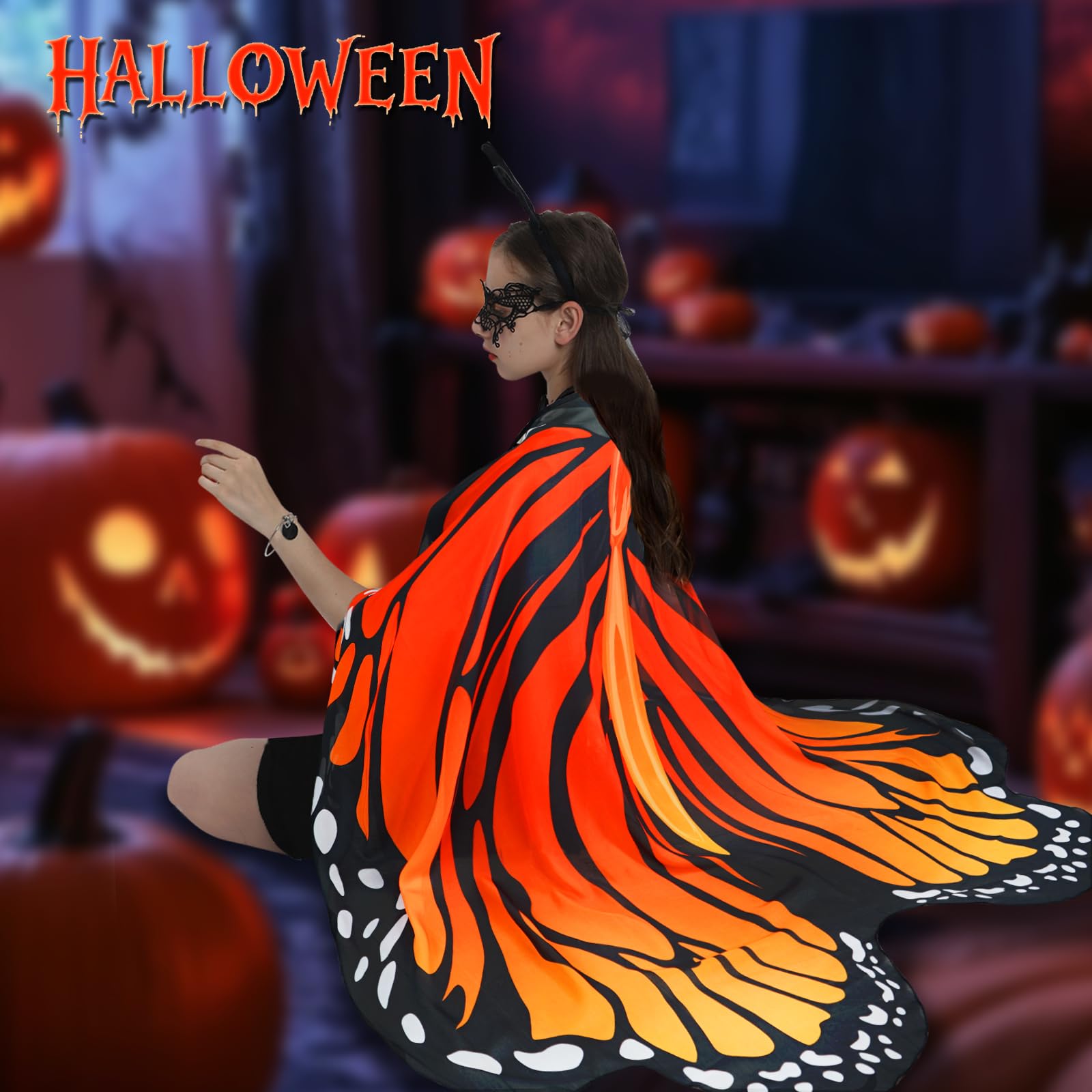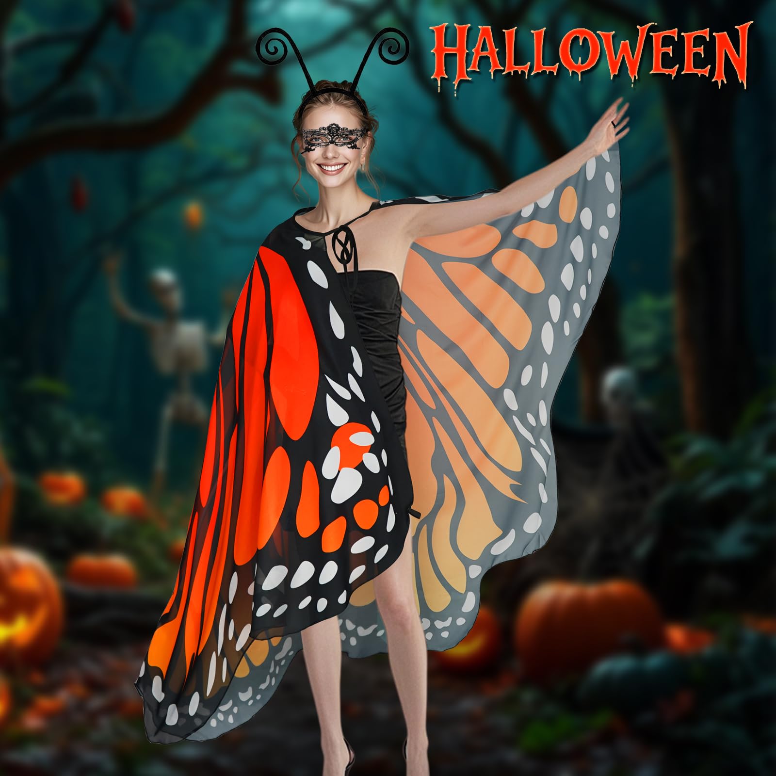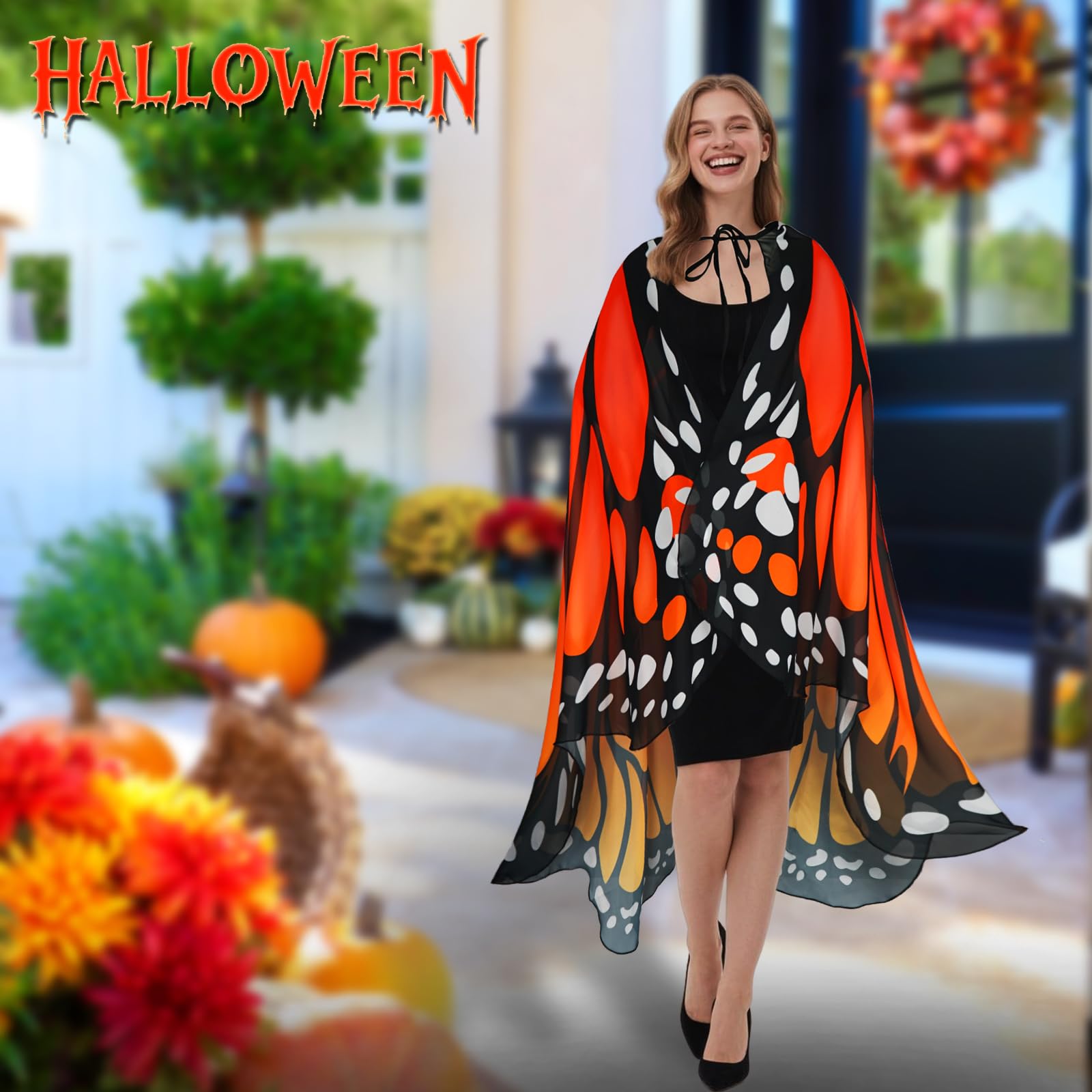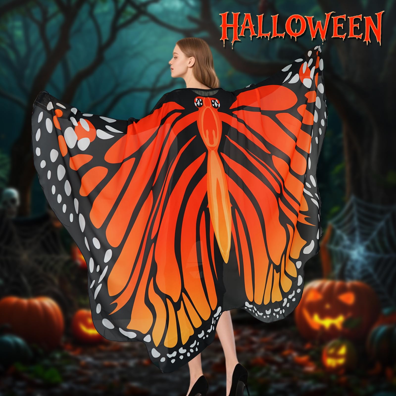 🦋Elegant Butterfly/Moth Wings-This adult women's butterfly/moth wings cape is designed with bright color,clear pattern and fashionable design.This halloween costumes for women in a soft and airy fabric,which delivers a lifelike fluttering effect.The butterfly/mothman costume with adjustable ties at the neck and the wings have elasticized finger loops at the top to attach fingers,keep it pretty.It is perfect for Halloween and cosplay to beach parties and dance performances