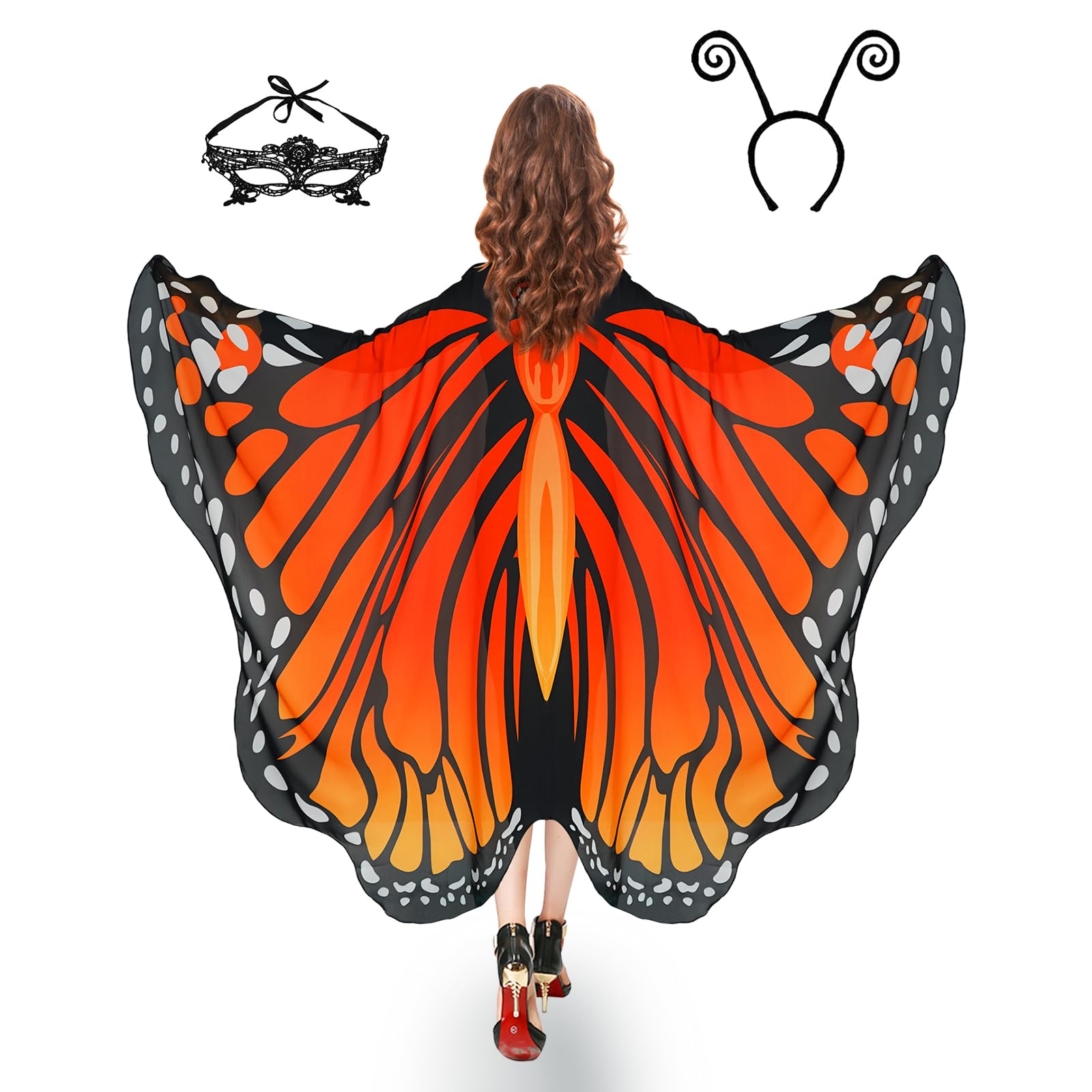 Description Halloween Women’s Set: 1 x Innovatively designed butterfly double-layer wings shawl, 1 x antennae headband and 1 x lace mask make you look even more mysterious and charming at the party! Material: The butterfly costume is made of high-quality light chiffon fabric that will not fade; the tentacle headband is made of velvet and plastic, which is strong and does not break easily; the mask is made of lace and soft to the skin. Suitable sizes: Butterfly wing shawl is about 78*55 inches, butterfly cloak is larger, and may not be suitable for children under 15 years old, tentacle headband height is about 30 cm/11.81 inches, lace mask size is about 12*4.5 inches Widely applicable to all occasions: Butterfly wings costumes are a great decoration for Halloween costumes, parties and beach decorations, and are also thoughtful gifts for mothers, lovers, family and friends. Light up your party: These butterfly costumes are designed in the shape of butterfly,which are cute and fun, and you can wear them on different occasions such as Halloween, Christmas, parties, carnivals, and show your vitality .