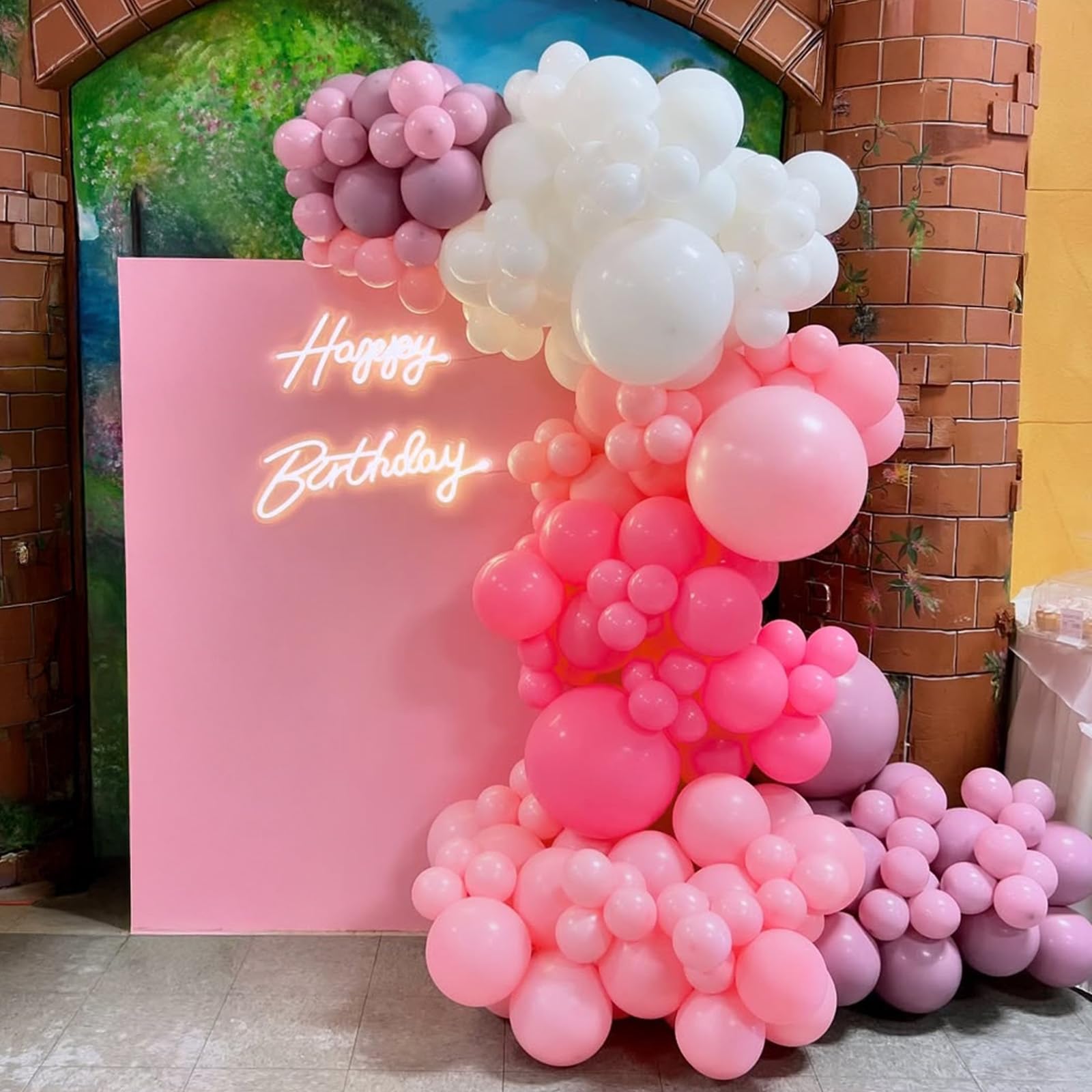 Multiple creative usesοΌOur pink happy birthday balloons kit are color coordinated, and can create unique balloon arches, bouquets, background walls, children's room decorations, party backgrounds. You can also freely combine pink white balloons according to your own creativity and needs to create a unique decorative effect. TIPS: The decorative effect of 2 packs or more balloons will be better!