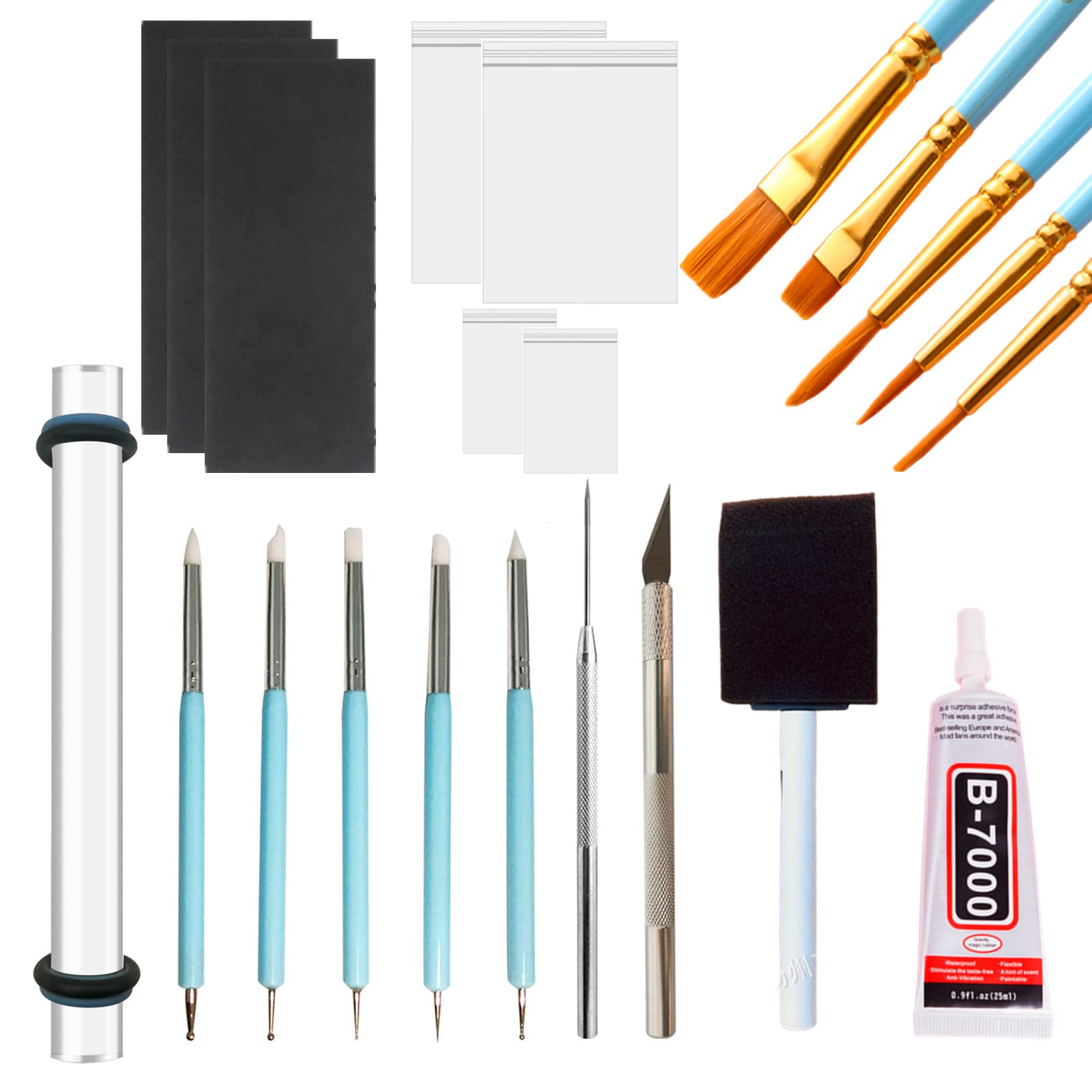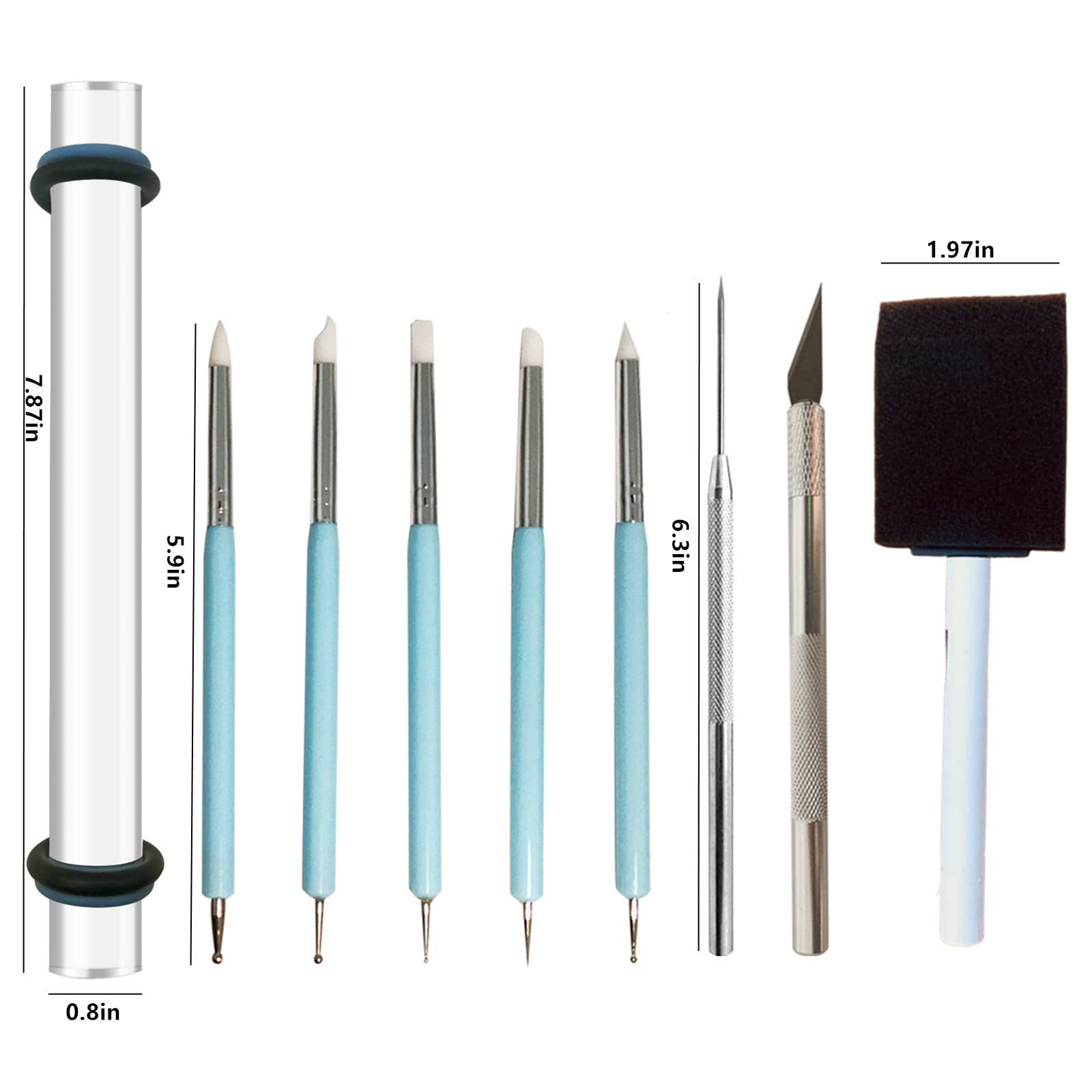 What You Get ----- In this kit,You will get 22Pcs Modeling Clay Sculpting Tools Kits,Including 5Pcs Double-Sided Set,5 brush pens,1 Sponge brush with 3 sponges,1acrylic rolling pin,1 needle detail tool,1 Exacto Knife,4rectangular transparent acrylic sheet.