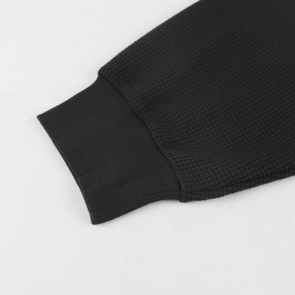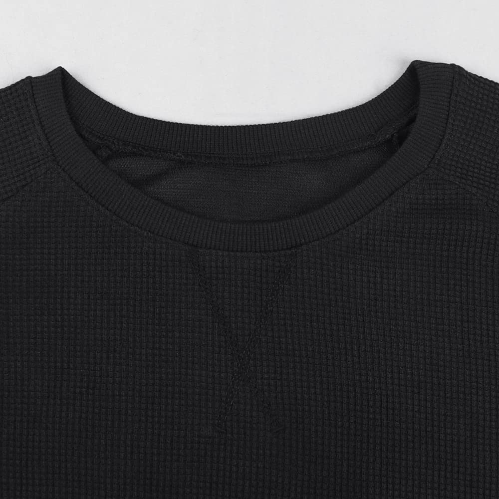 JEEING GEAR Men's Basic Long Sleeve Waffle Sweatshirt Loose Fit Workout Pullover Crewneck Shirt Black Color Size XL
