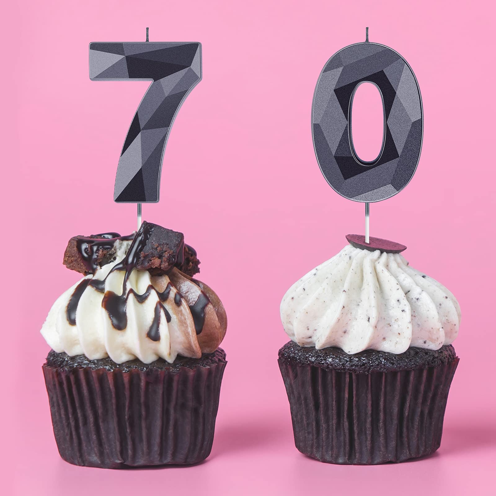 3D Diamond design: the number 70 candles come in classic black color and vivid 3D design, look pretty and eye-catching under lamplight and shine bright in dark light, you also can apply them as nice cake topper decoration for embellishing your cake and cupcake, make your birthday cake stand out