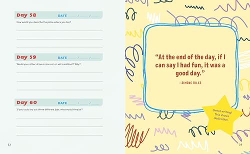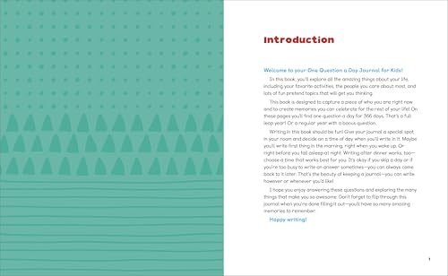 Encourage kids ages 6 to 9 to explore everything that makes them awesome Journaling is a fun way for kids to unleash their creativity and discover who they are. This guided journal for kids offers a year's worth of quick and easy questions that inspire them to write a little bit about themselves every day. What sets this journal with one question a day for kids apart: A year of prompts―Kids can explore all the amazing things about their life―including their favorite activities and the people they care about most―plus lots of imaginative topics that will spark their creativity. Words of wisdom―Find uplifting quotes and positive affirmations sprinkled throughout this kids' journal, encouraging them to keep writing and learning more about themselves each day. A simple format―Kids can use this journal however they want, with questions they can answer at their own pace and in any order. Help kids celebrate all the things that make them unique with this one-question-a-day journal.