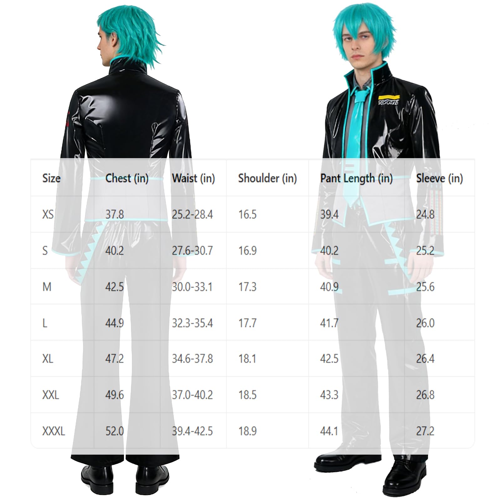 Sizes range from S to 2XL. Please check the size chart before placing an order. The patent leather material has an excellent texture and is very suitable for photography and cospaly exhibitions.