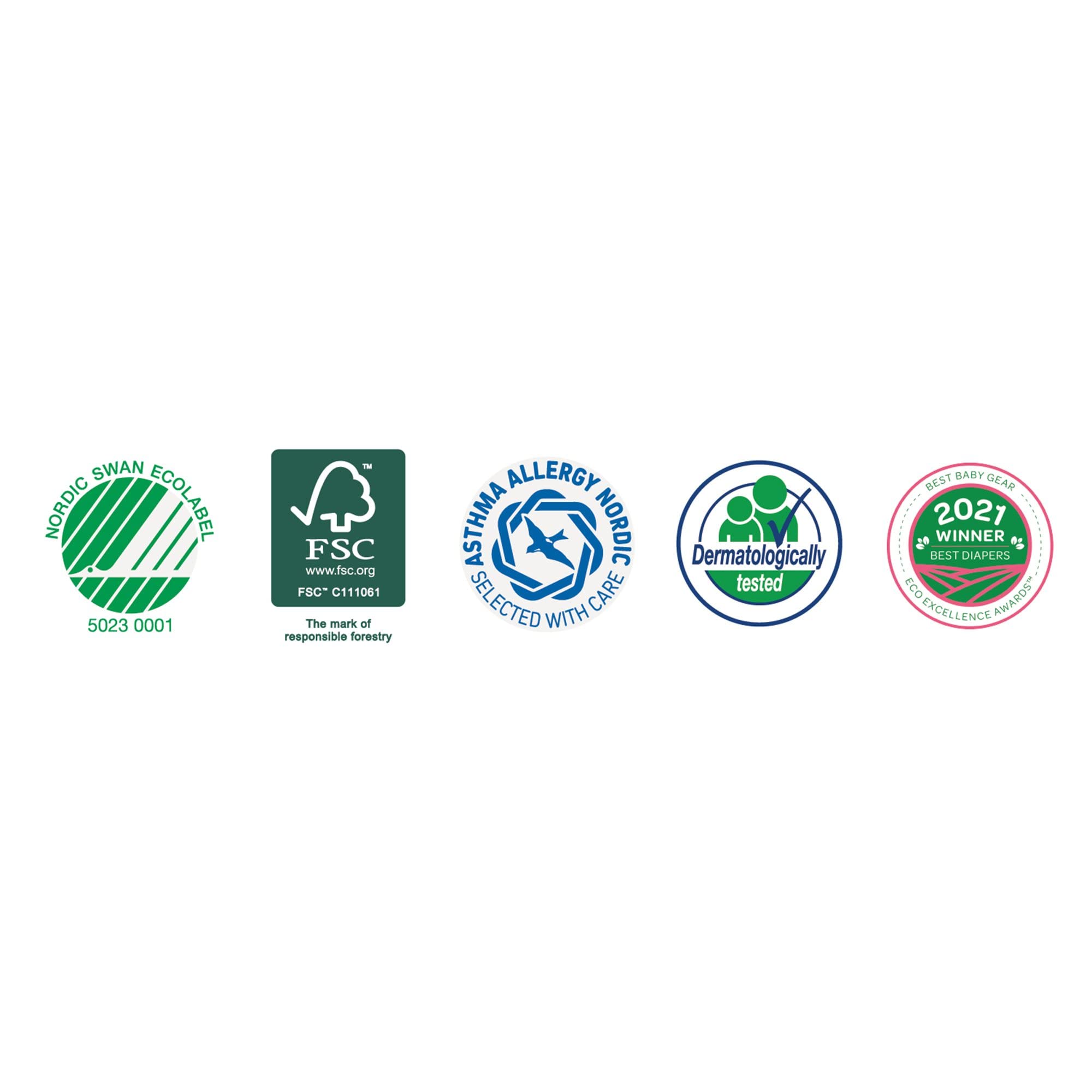 THE BEST FOR OUR PLANET - made from 100% wind power and the first baby diapers certified with the Nordic Swan Ecolabel.