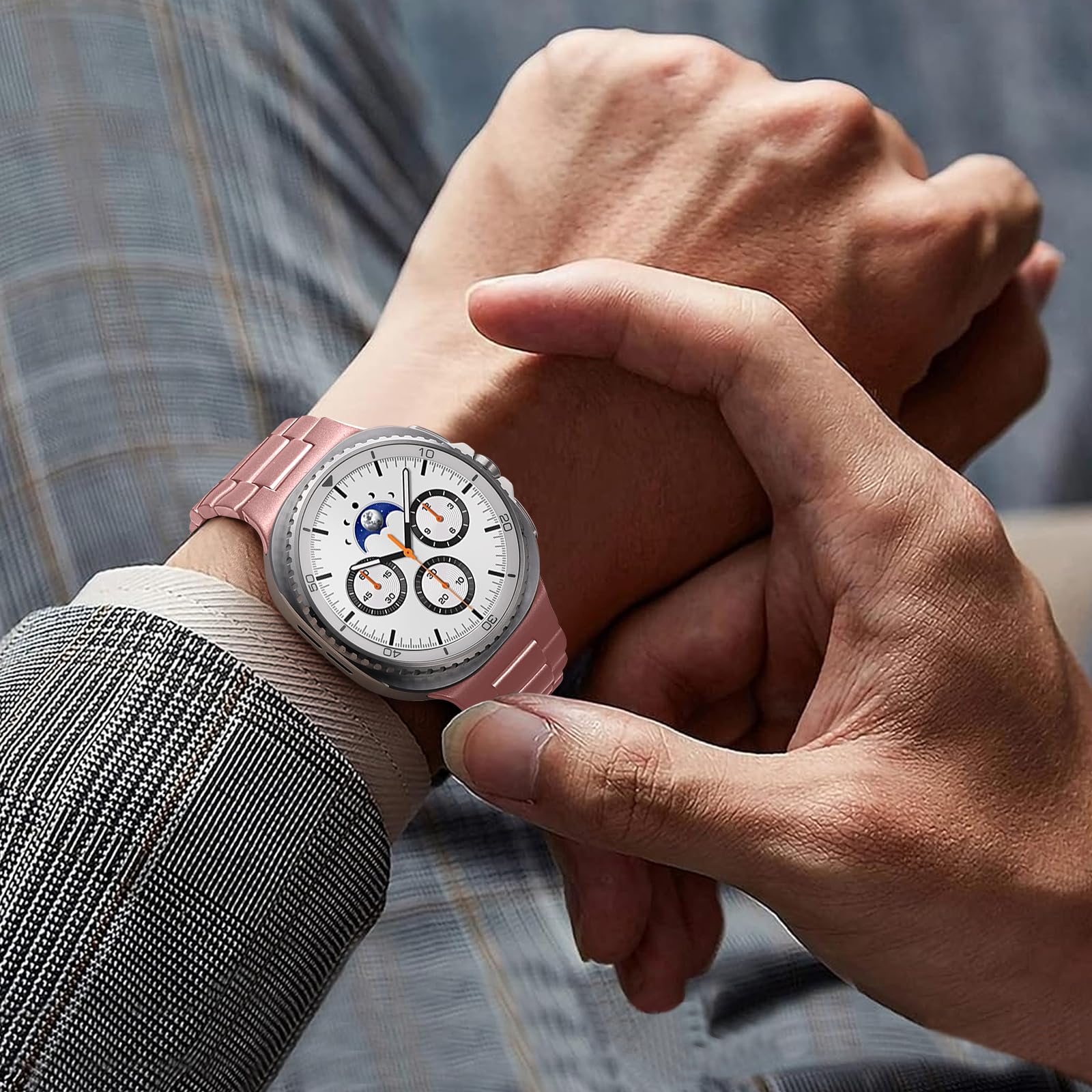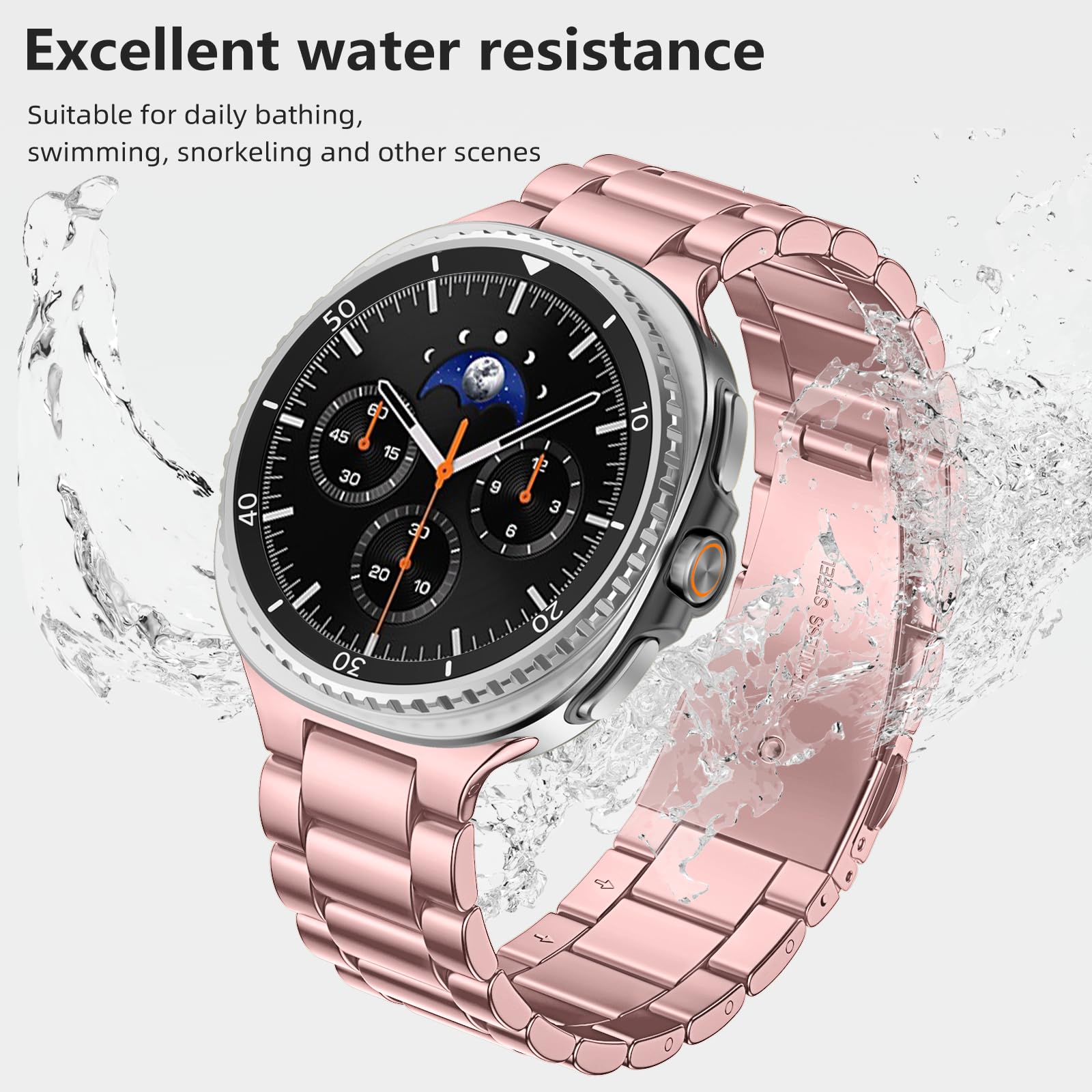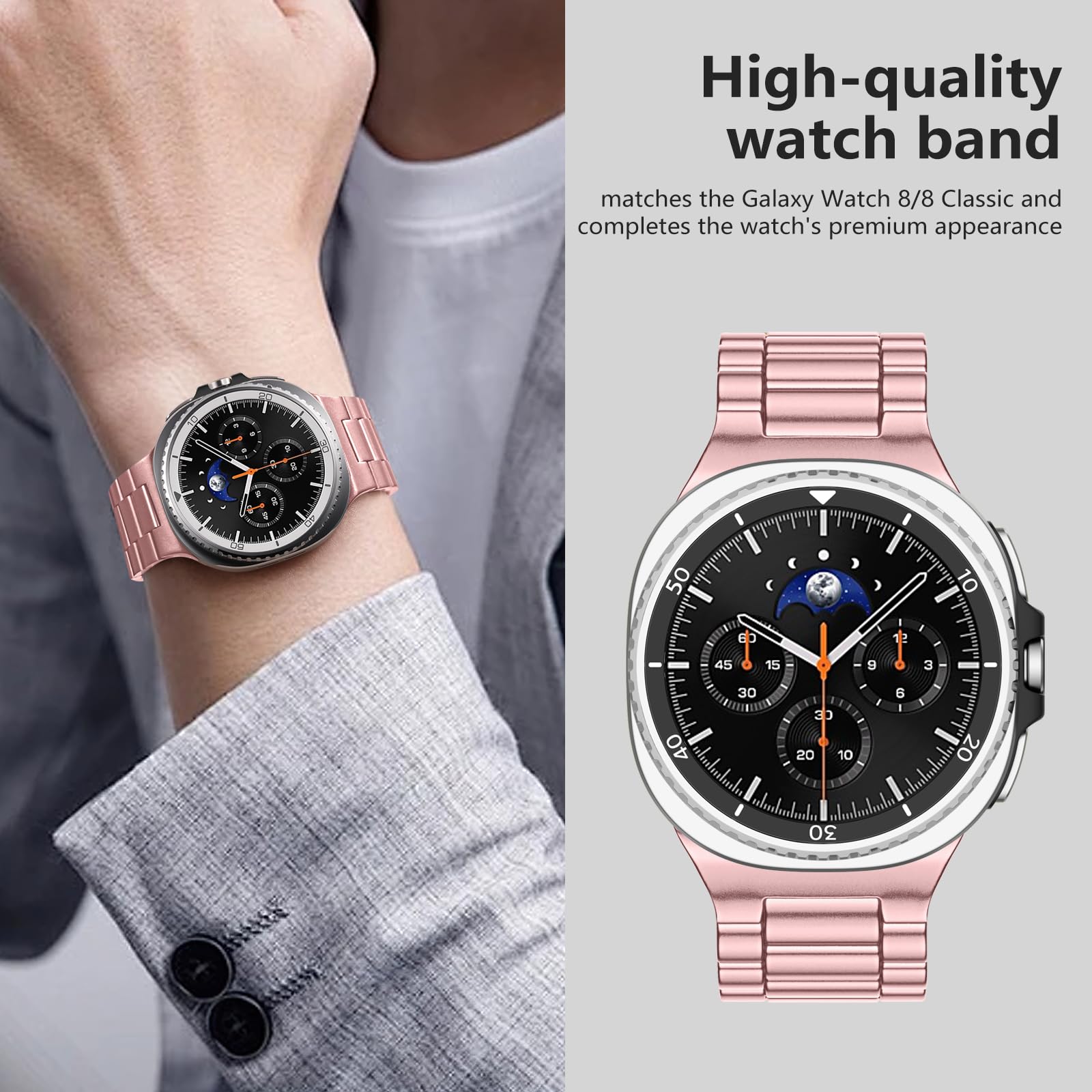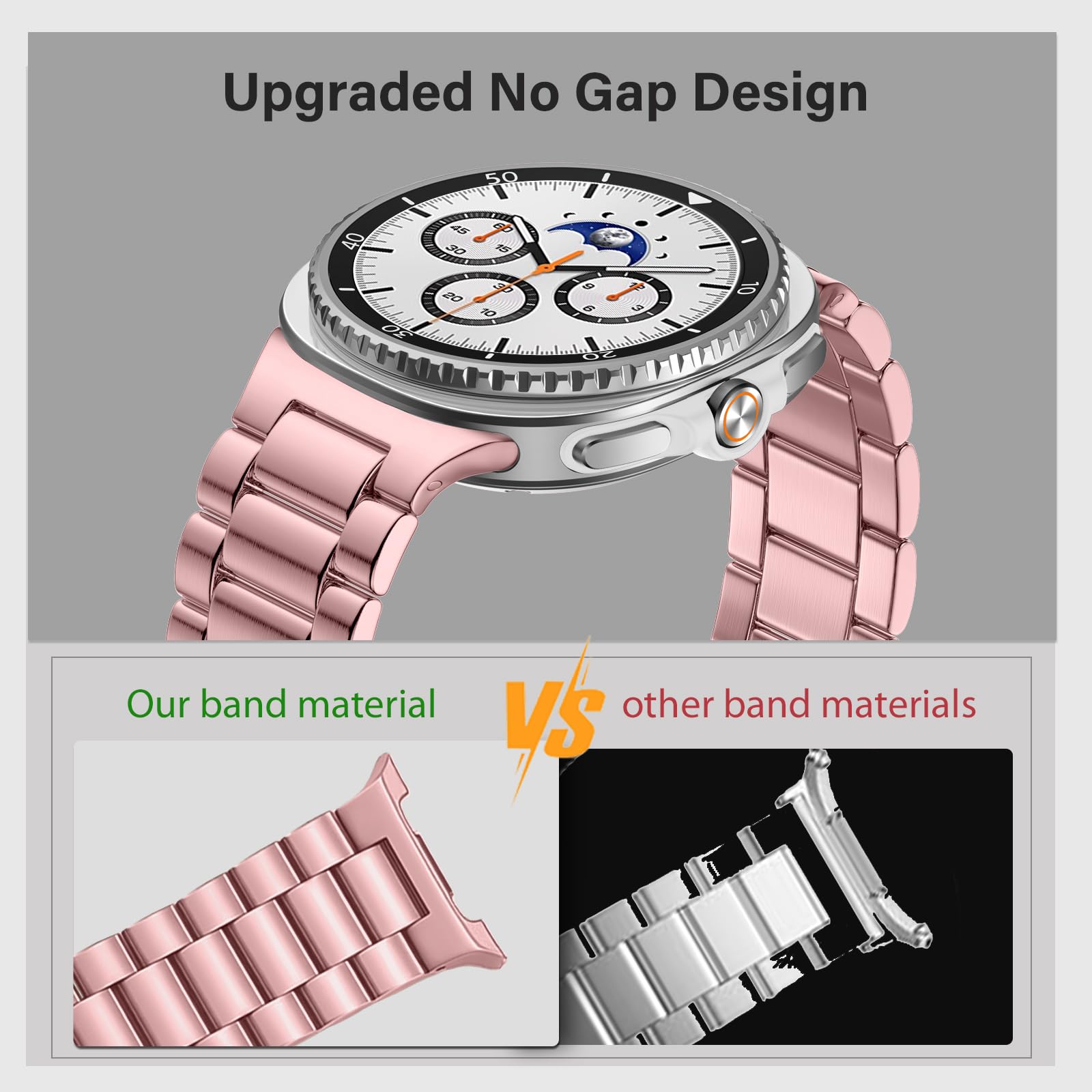 ✅【Upgrade Electroplating】 Lerobo galaxy watch 8 classic band uses a nano-electroplating process that deeply embeds pigments into the metal, providing superior durability and a lasting shine compared to ordinary plating methods.We adopt an upgraded one-piece design, which makes the band more stable in the long term, less prone to dirt and grime accumulation, and also looks more high-end and elegant when viewed externally.