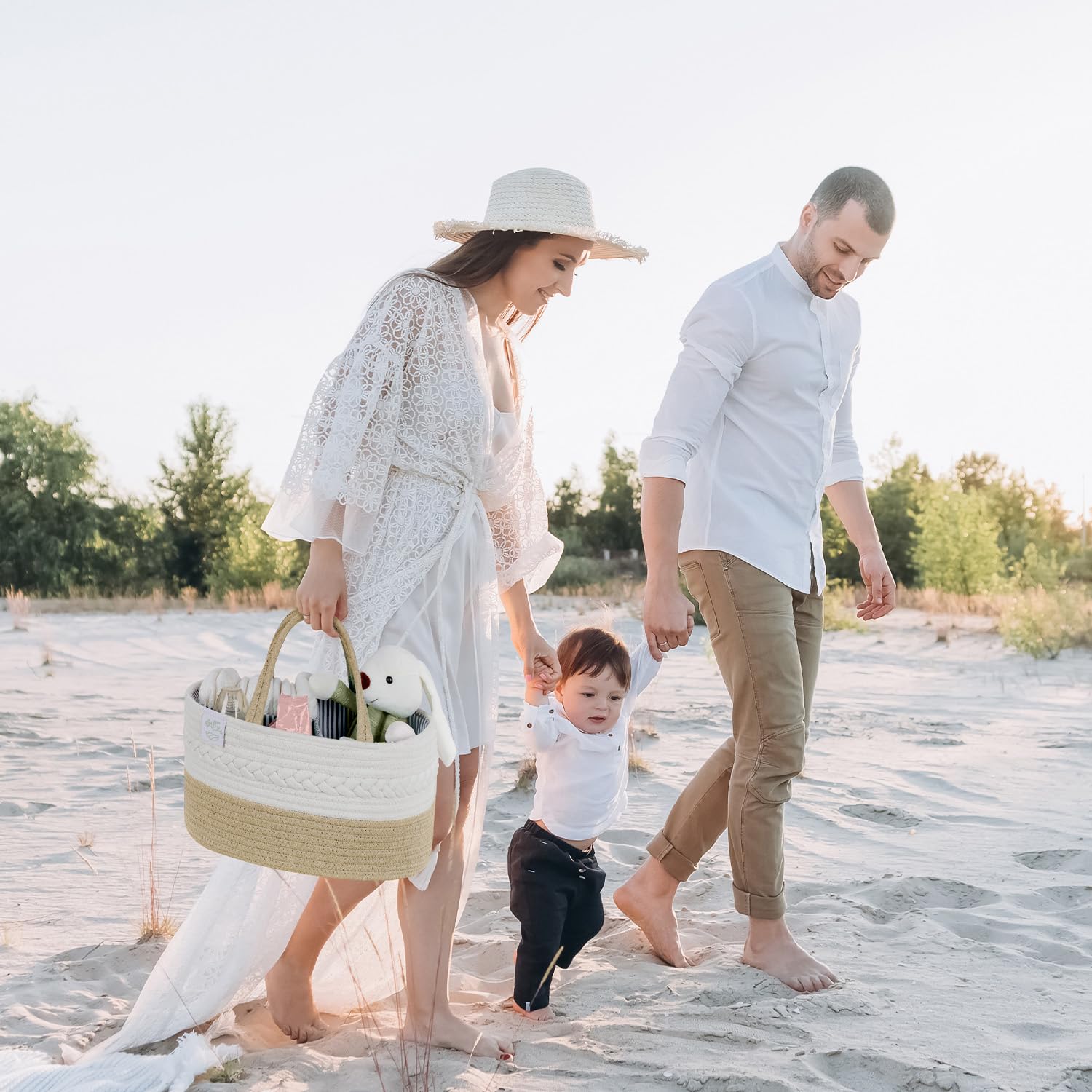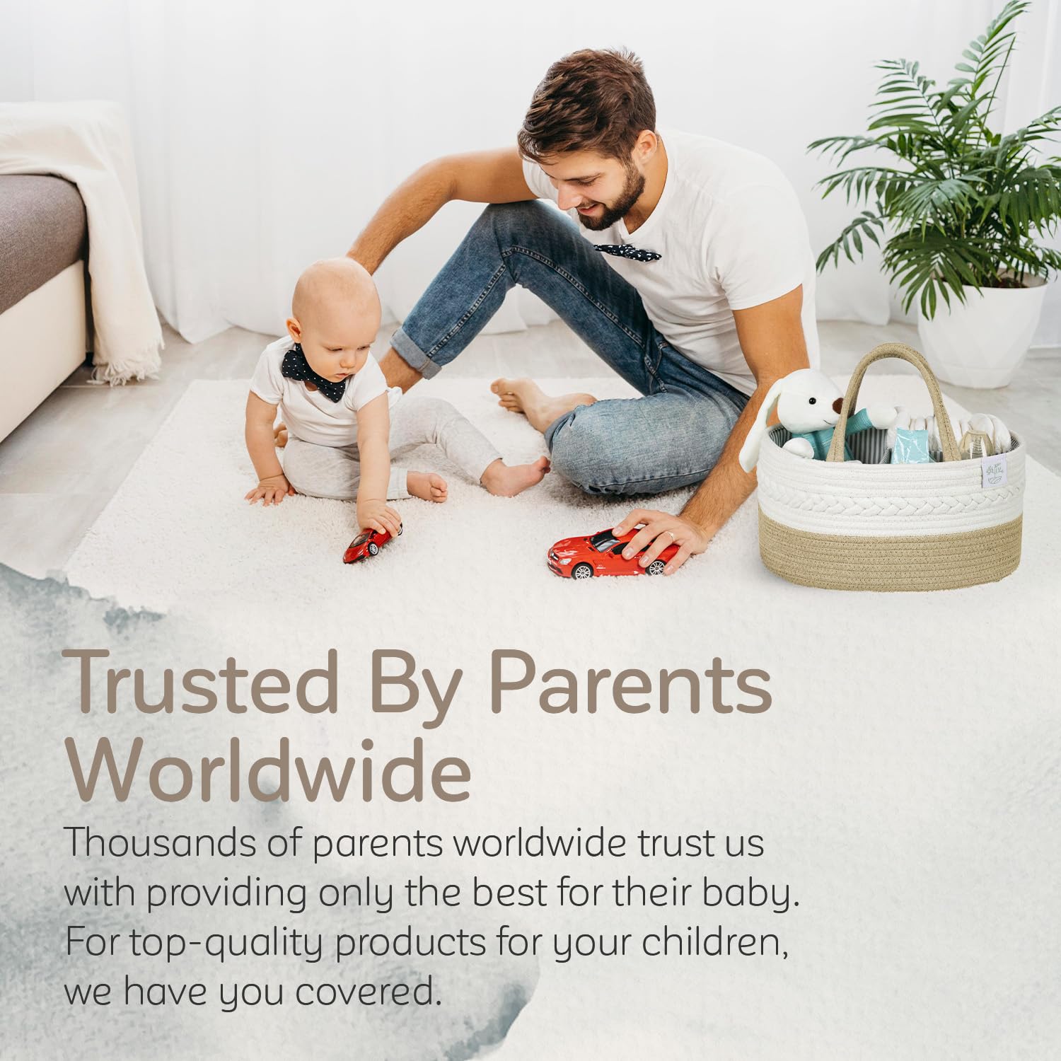 Perfect Baby Shower Gift: Surprise new parents with this versatile diaper organizer caddy. It's the ideal large diaper caddy also in X-Large, perfect for storing baby essentials as a basket for nursery or as a nappy caddy for travel. Whether used as a diaper holder at home or a rope diaper caddy on the go, it offers ample space for everything. A practical and thoughtful gift that new moms and dads will love!