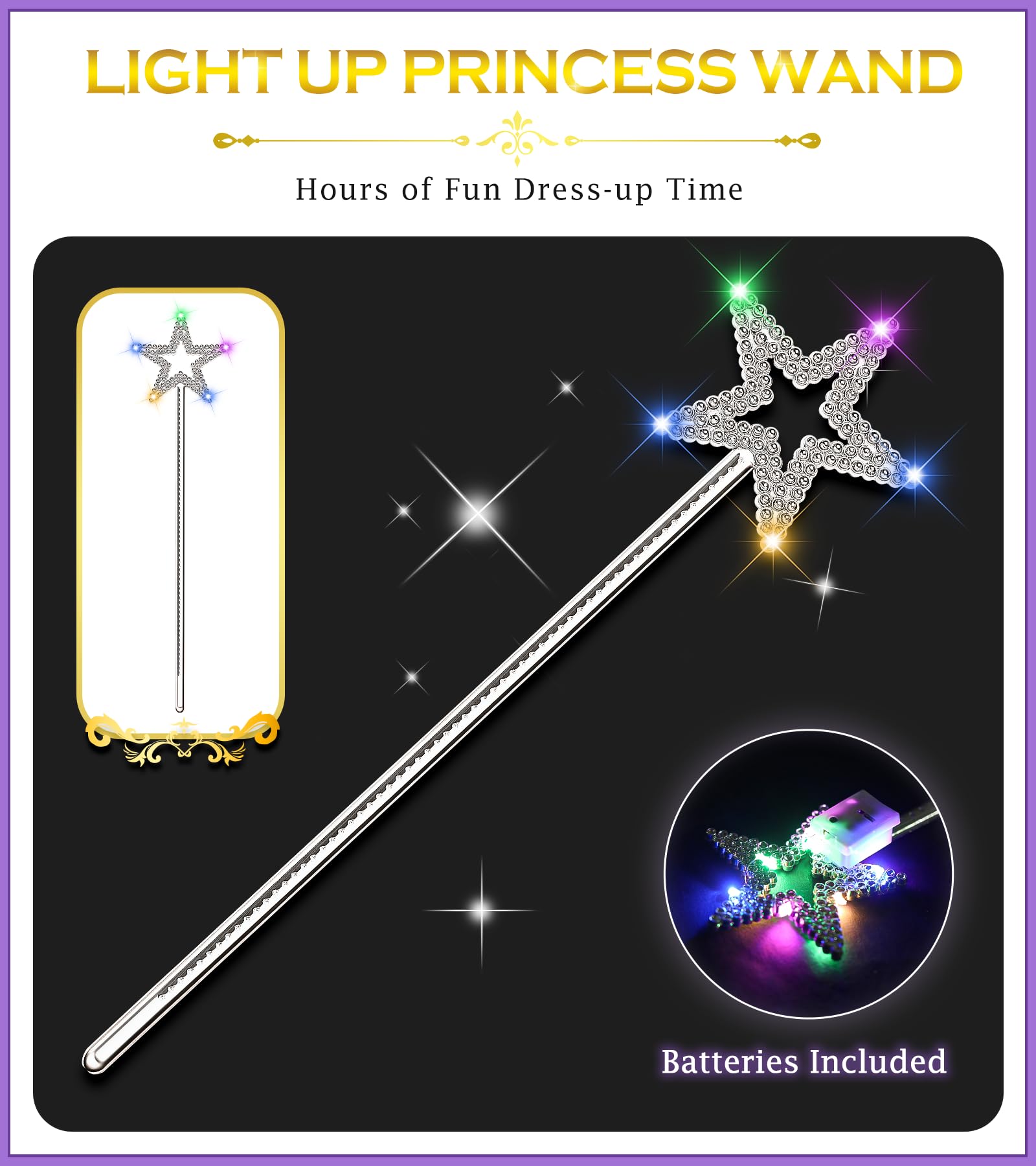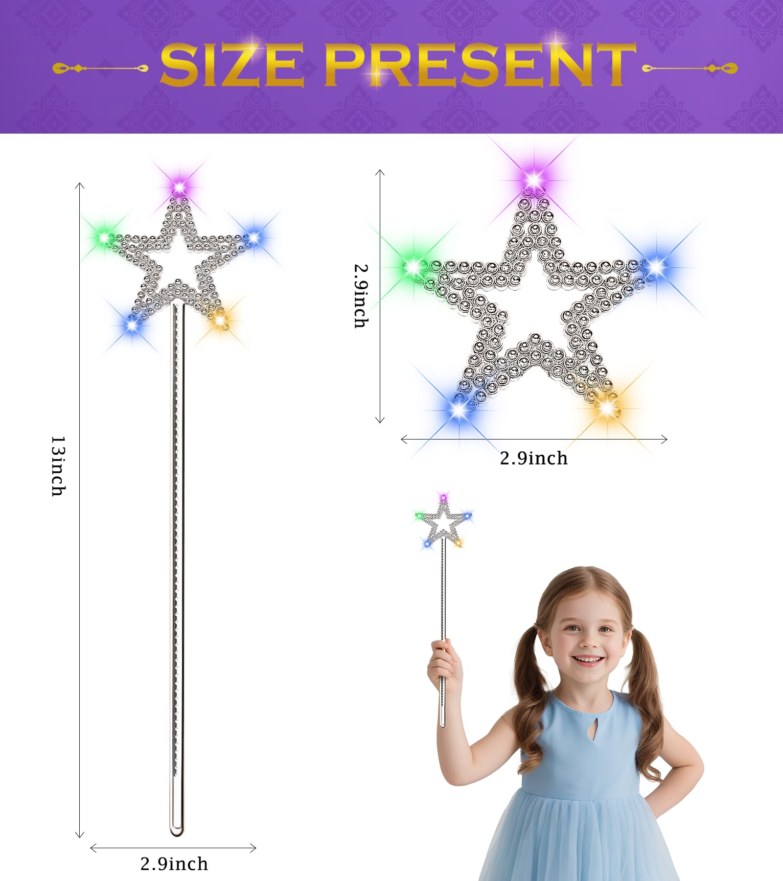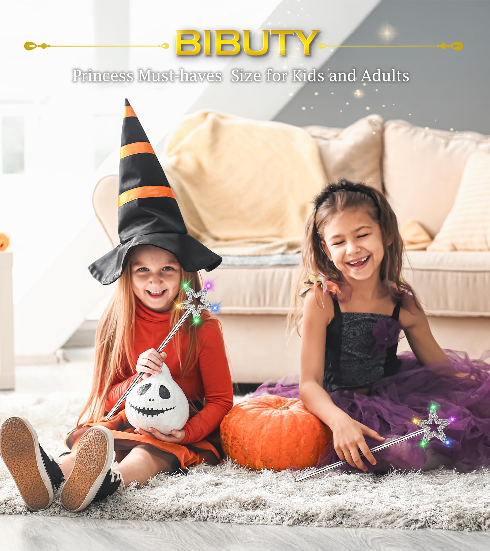 Light up Magic Wand for Kids: Does your little girl have plenty of princess accessories for girls, but need all the fun items, especially the princess wands for little girls? BIBUTY princess dress up, a hit for imaginative play time with 1pc of LED star wands fairy wands for kids. One size toy gift for both kids and adults.