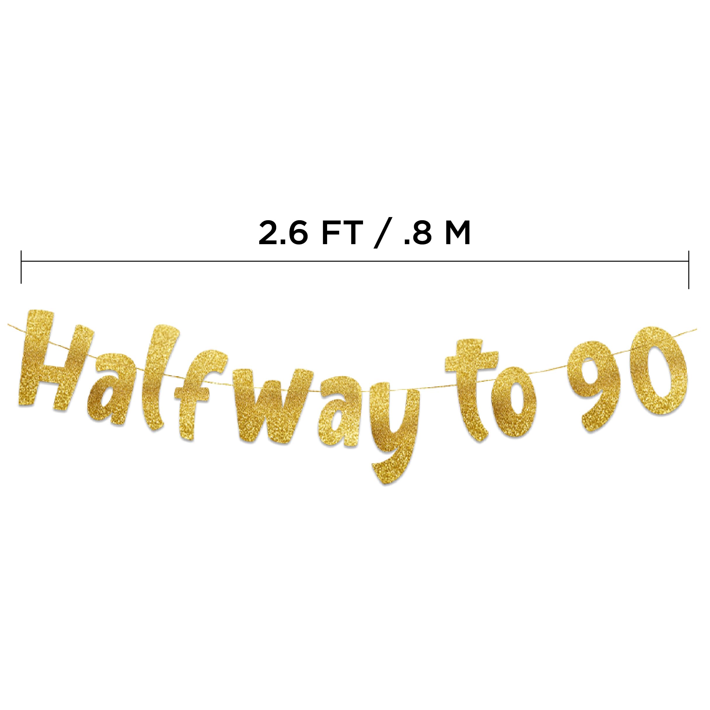 Happy 45th! What better way to celebrate than with our premium quality “Halfway to 90” gold glitter banner. This is the perfect decoration to add a touch of classy decor and welcome your guests to the occasion.