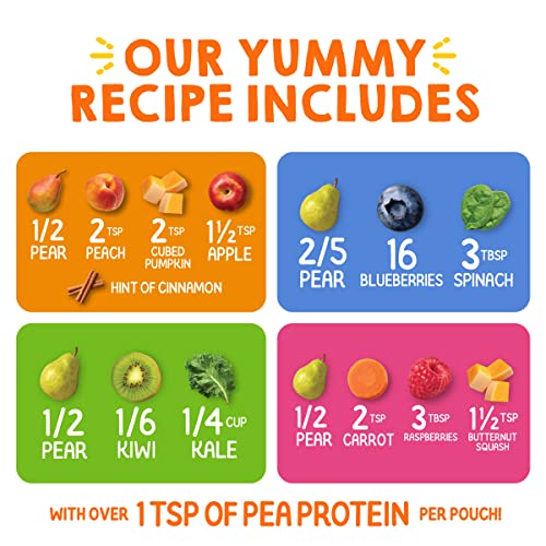 Fiber & Protein: great for any toddler who is on the move, our Fiber & Protein pouches are a mix of organic fruits & veggies. Fiber helps support the digestive system. Protein is a key building block for growing bodies. Easy to love and easier to eat, just grab and go.