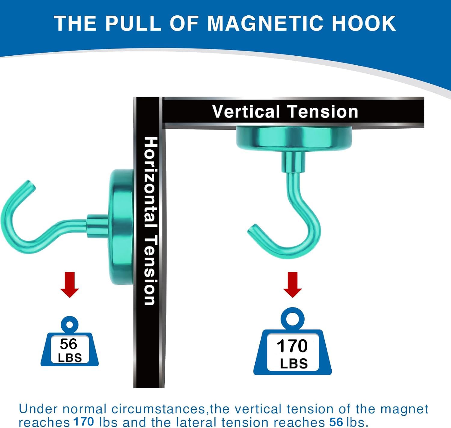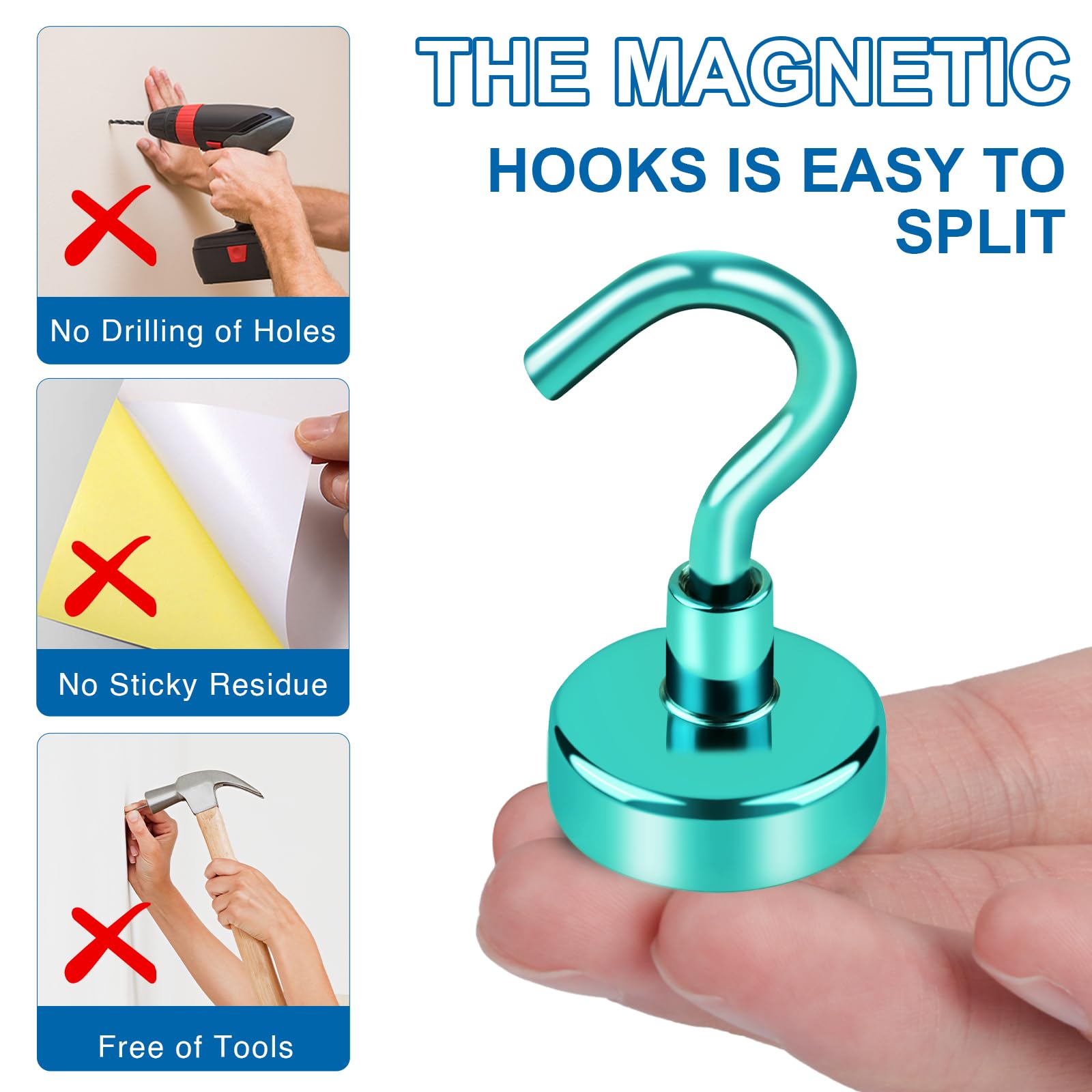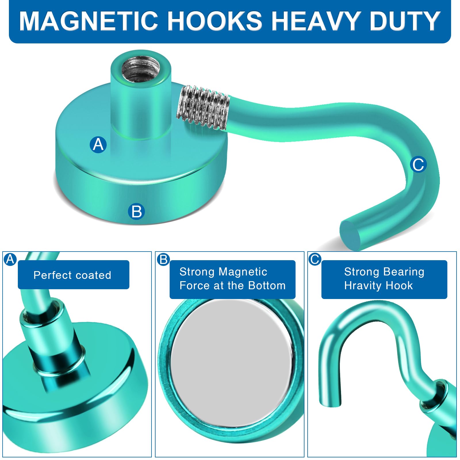 【MAGNETIC HOOKS】With our magnetic hooks, you can get over 170LBS of pulling force vertically and 56LBS horizontally. These colorful metal magnetic hooks for cruise essentials are very sturdy and perfect for hanging the items you need to make your life easier.