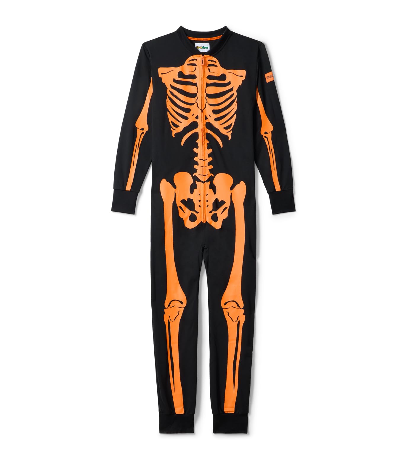 EASY HALLOWEEN FUN This menβs zip-up skeleton onesie costume combines comfort and convenience with bold style for an effortlessly fun Halloween night.
