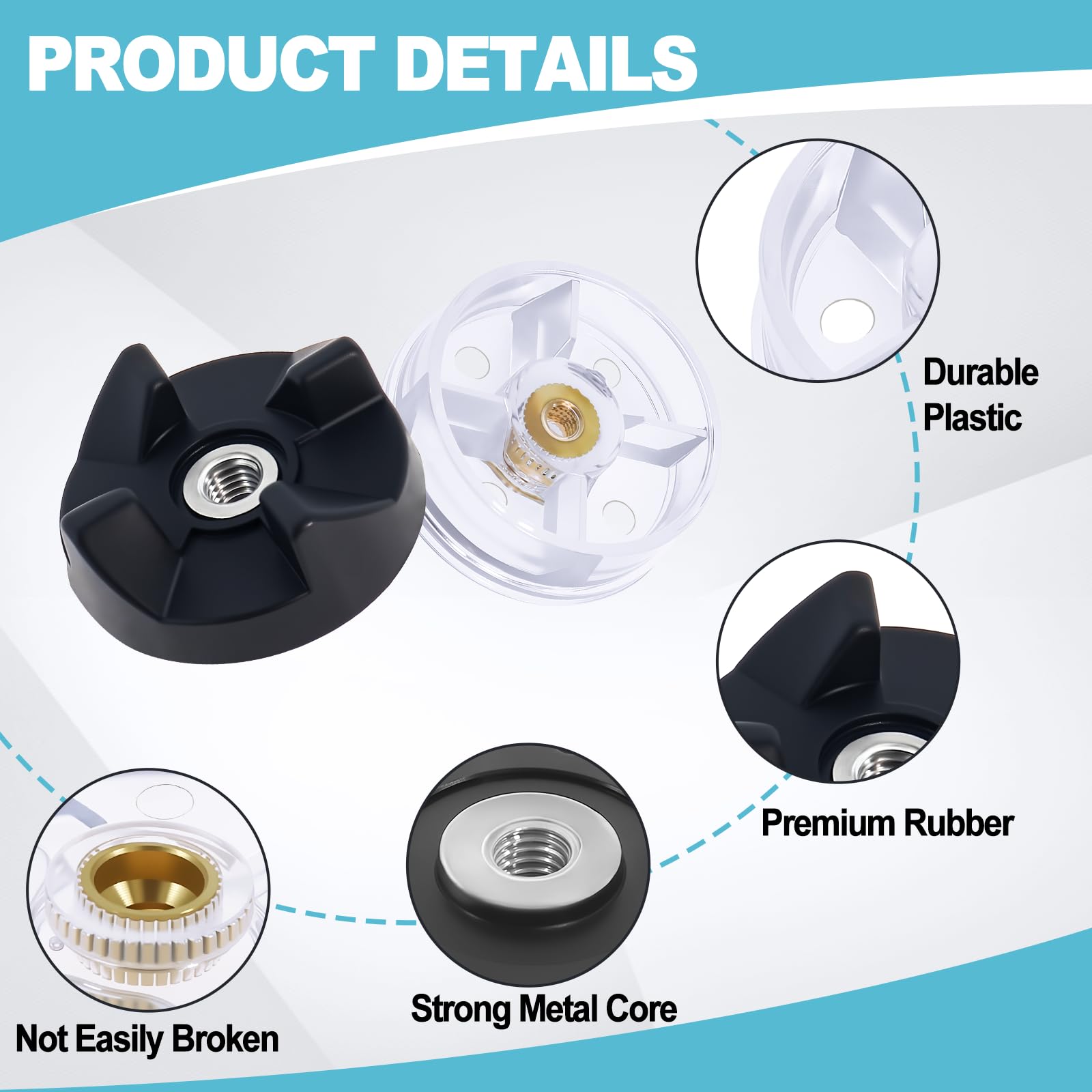 Package include: 2 plastic gears for the motor base and 2 rubber gears for under the blade. Blade is not included