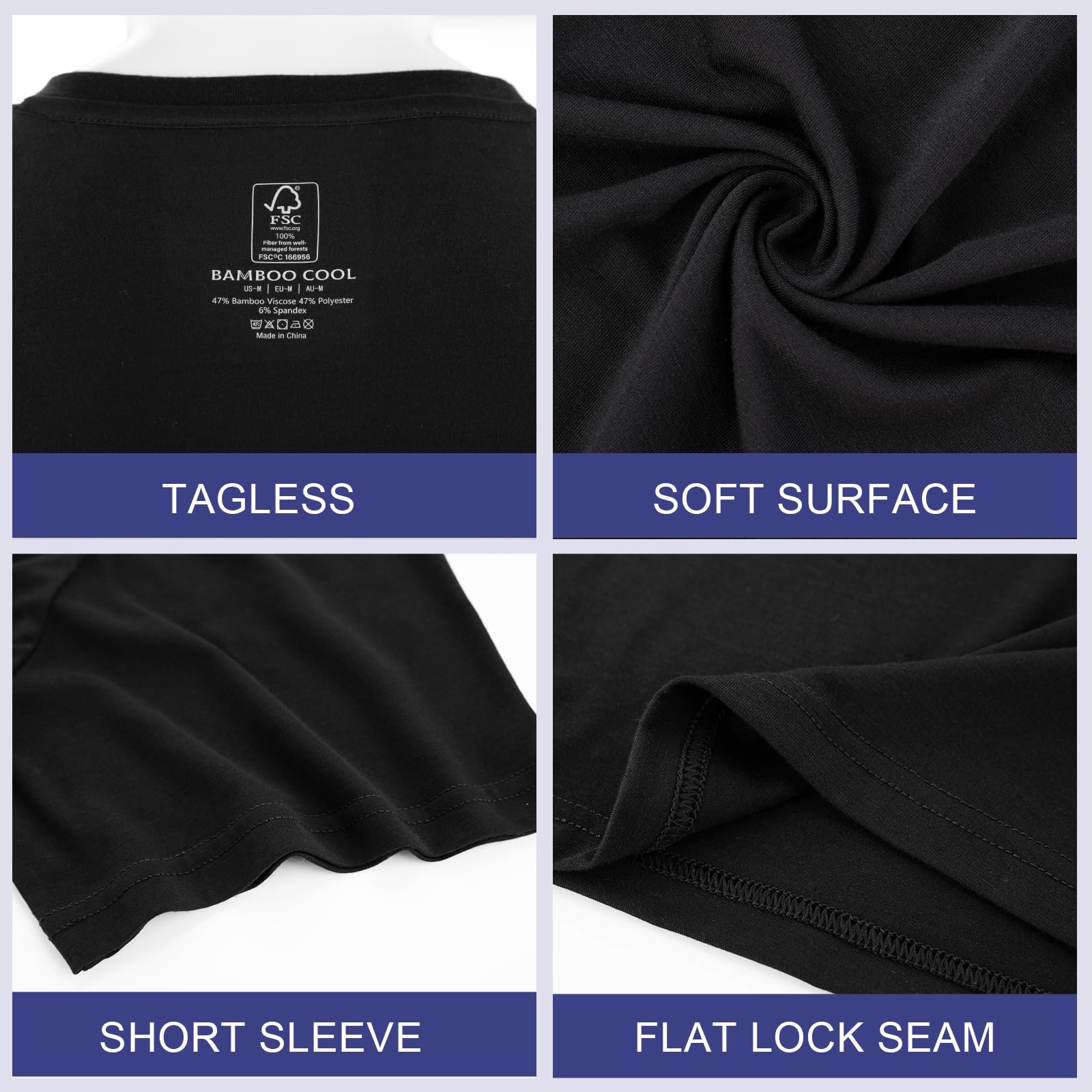 Every Detail Matters:Tag Free Design, Invisible Collar, Classic Fit,Skin Less Irriatating On Sensitive Skin.More Details From Bamboo Cool Black Tees For Men To Be Explored By You.