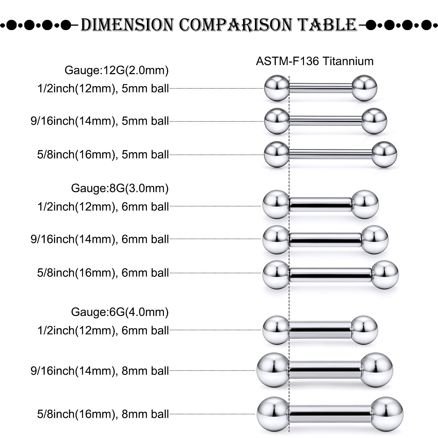 [Style]: 1 pairs Titanium Internally Threaded Straight Barbells Nipple Tongue Rings Piercing Jewelry.
