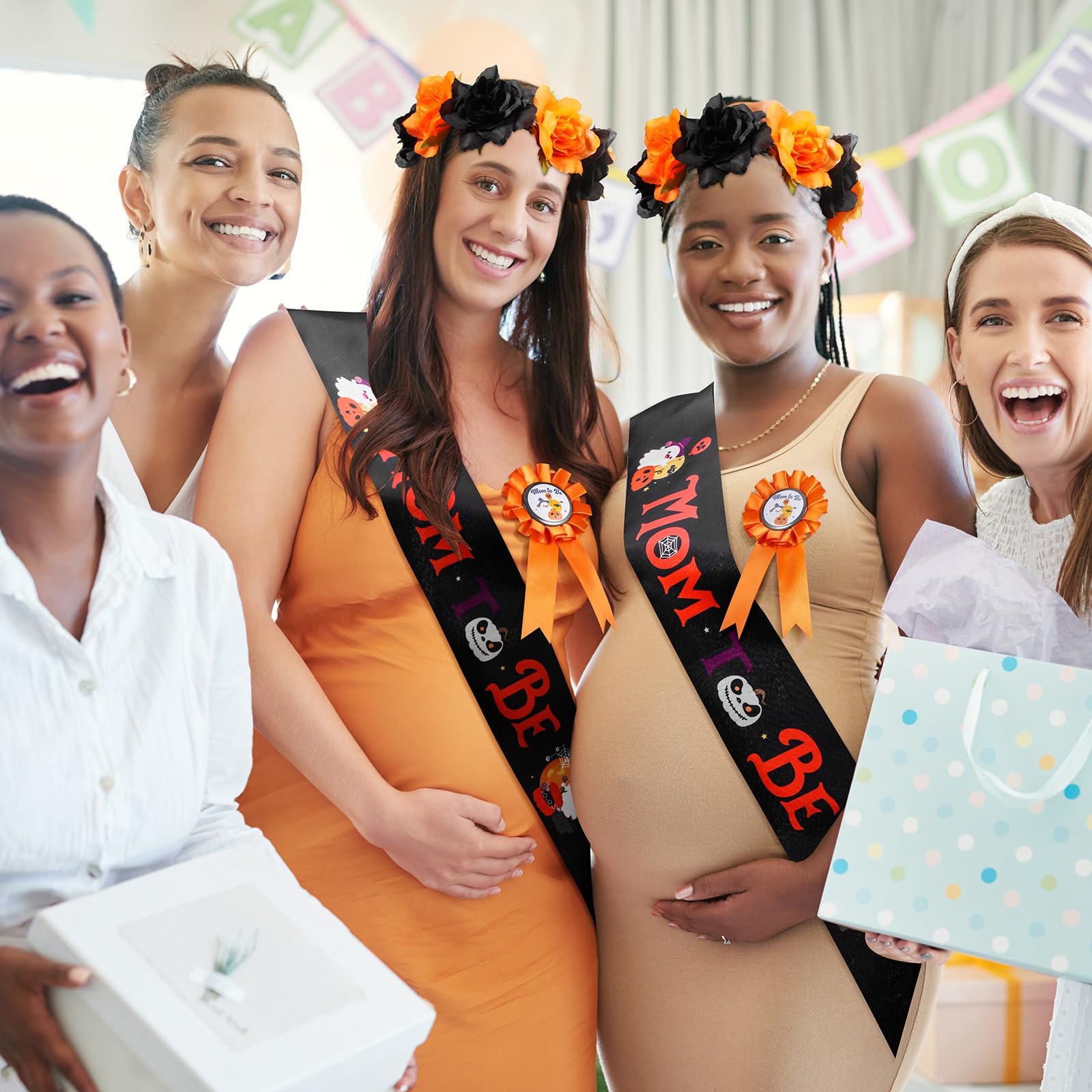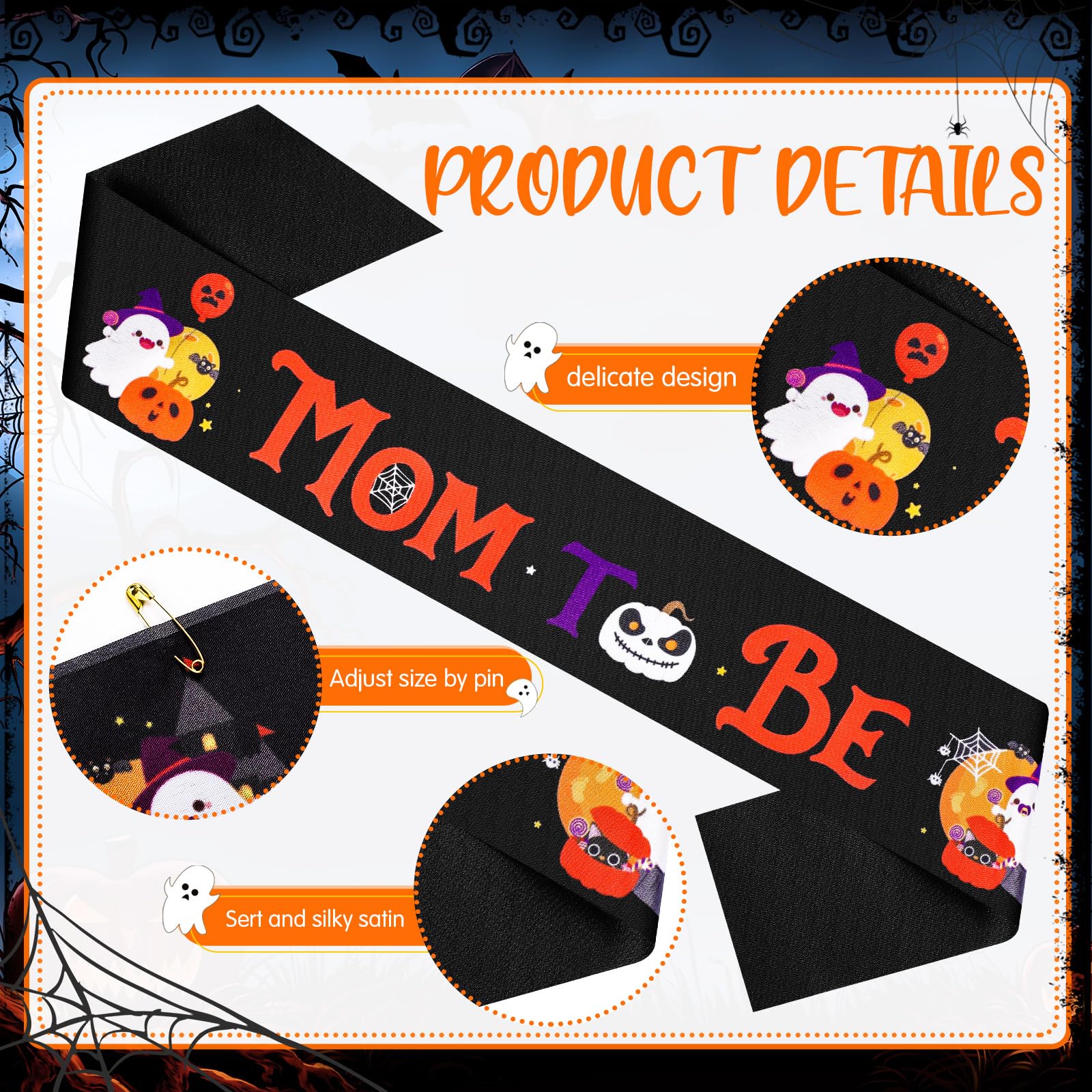 Reliable Material: these mom to be baby shower decorations for boys and girls are mainly made of fabric and ribbon, this Halloween themed shoulder sash and pin kit is reliable and skin friendly, wear resistant, not easy to break or deform, and can be applied by dad or mom for a long time