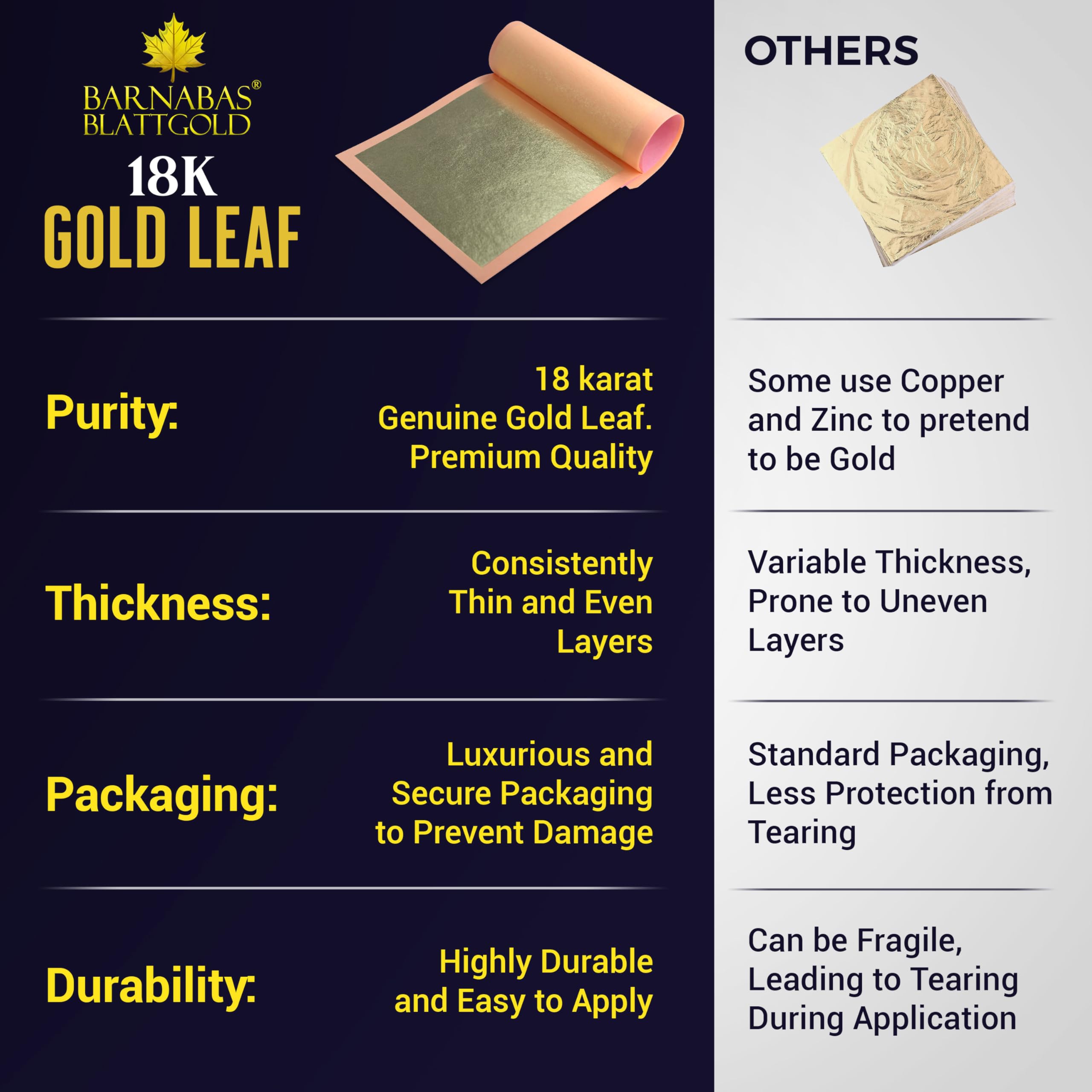 Customer Loyalty & Trust: We have earned customer satisfaction and trust over the years with our gold 12k real gold leaf sheets and the team being constantly on hand to answer queries or solve any doubts our clients may have.