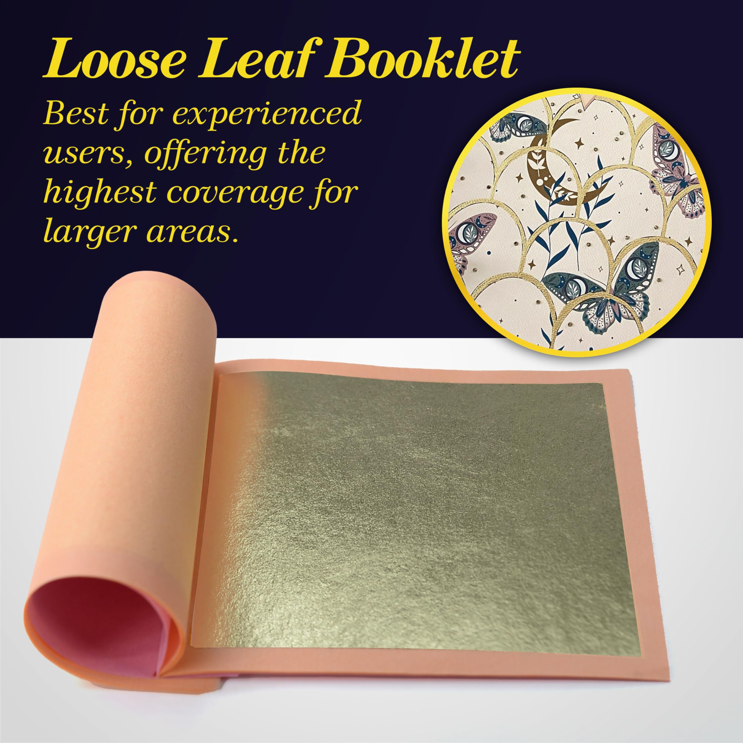 Loose Leaf: Each gold leaf foil sheet or hojas de oro para manualidades is separated by tissue paper.